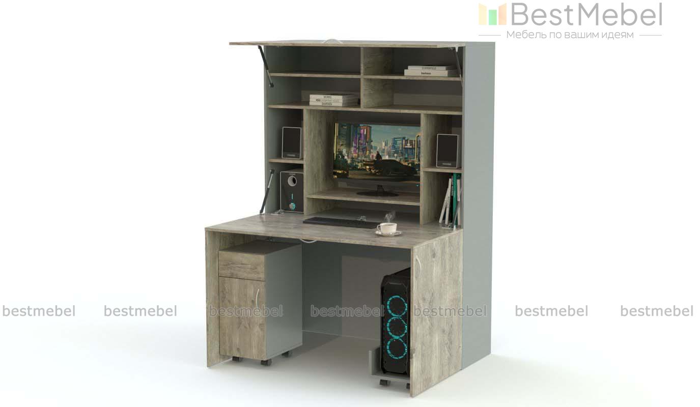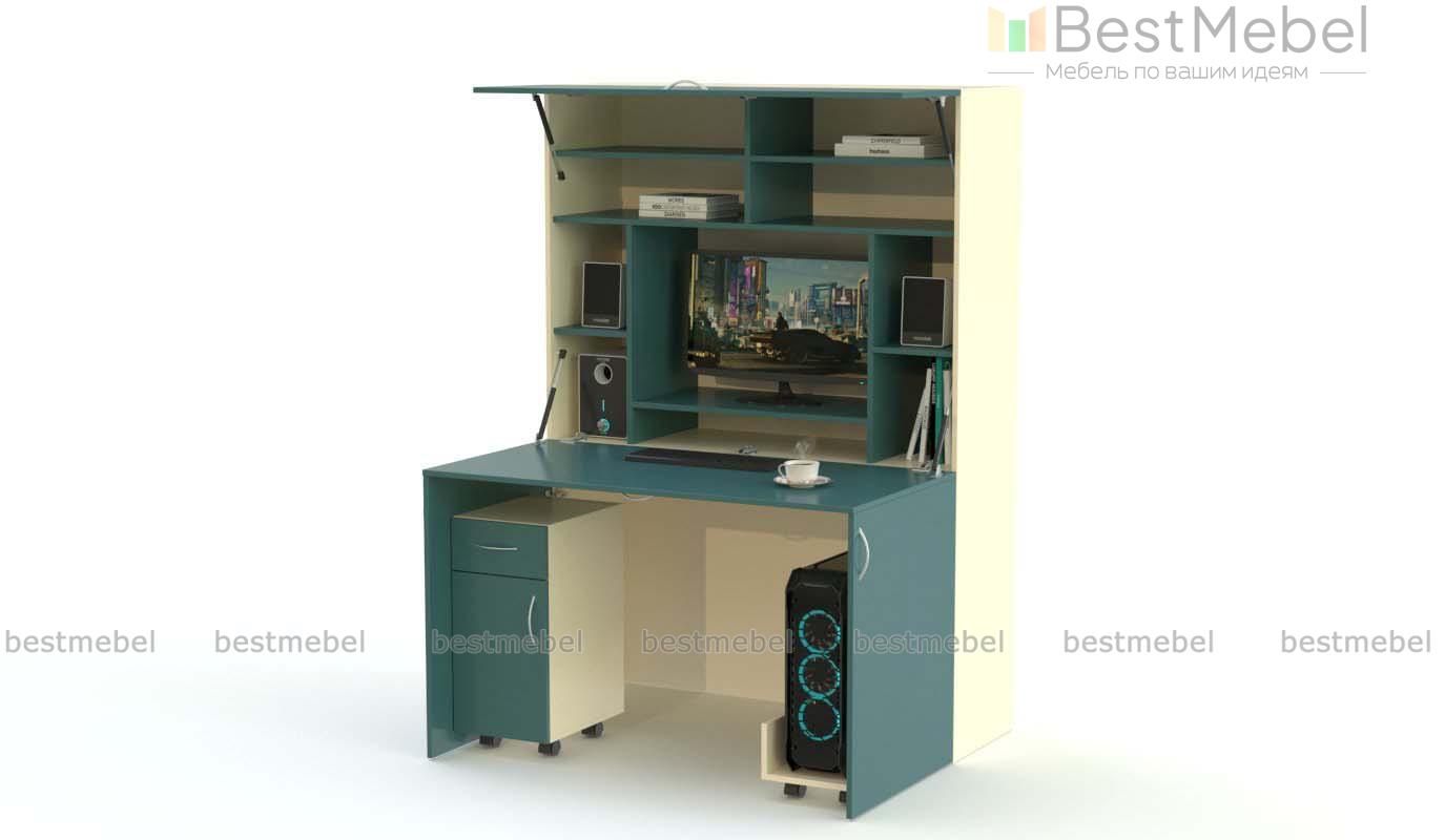 Компьютерный стол-трансформер Элиза 1 BMS станет практичной альтернативой стандартным столам в условиях ограниченного пространства. Компактный шкаф с лаконичным фасадом, выполненным из ЛДСП с имитацией древесной текстуры, органично вписывается в интерьер современной квартиры или офиса. Модель оборудована откидной столешницей, опорными распашными створками, к которым крепятся тумба и подставка для системного блока с колесиками, и книжными полками за открывающейся вверх дверцей. Купить компьютерный стол-трансформер Элиза 1 BMS вы сможете на сайте нашего интернет-магазина.