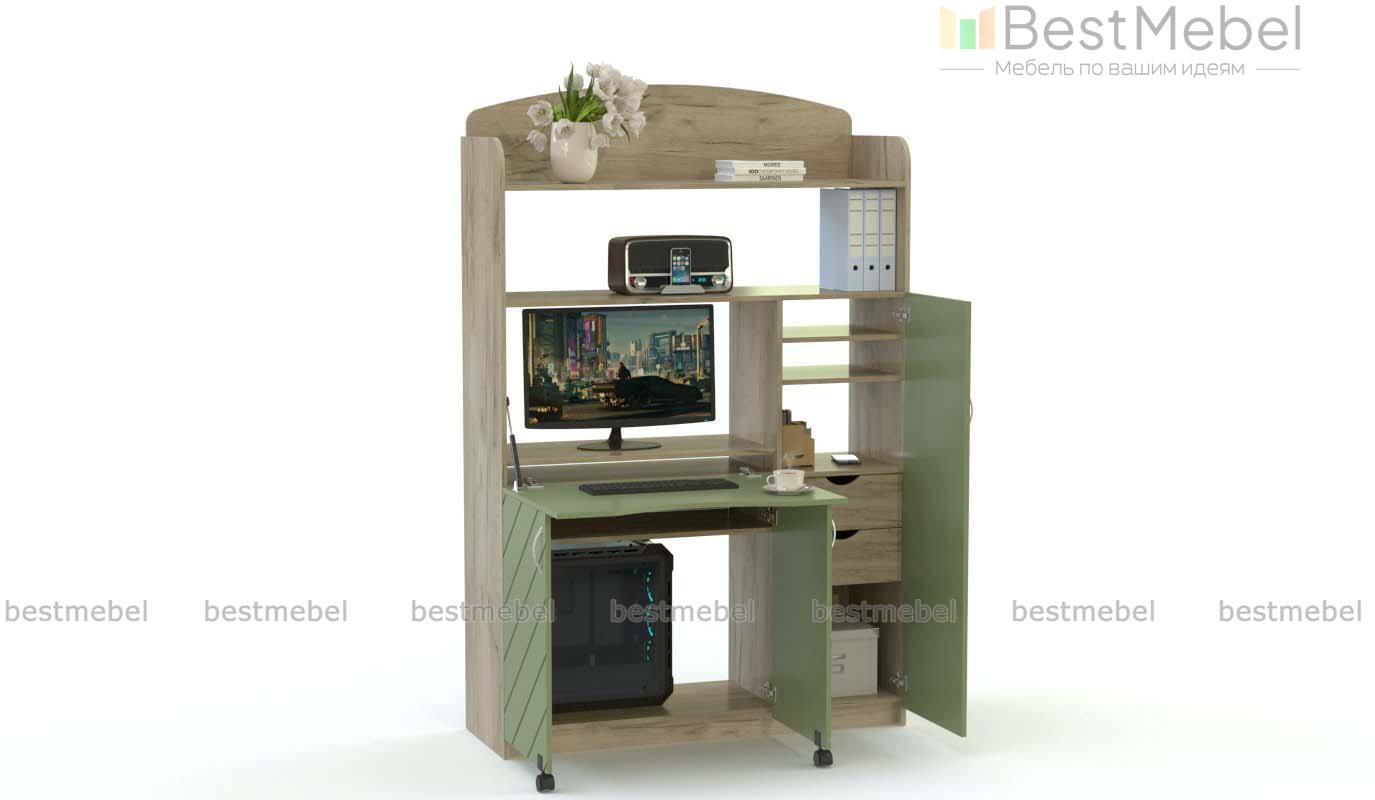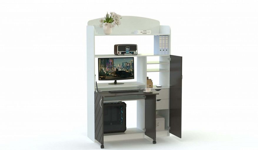 Компьютерный стол-трансформер Медея 10 BMS станет прекрасным выбором для работы или учебы. В сложенном виде модель не занимает много места и представляет собой декорированный фрезеровкой шкаф с запирающимися на ключ дверцами и двумя открытыми верхними полками для книг и интерьерных украшений. Откидная столешница на опорных створках с колесиками легко превращает шкаф в удобное рабочее место с нишей под монитор. Купить компьютерный стол-трансформер Медея 10 BMS вы сможете на сайте нашего интернет-магазина.