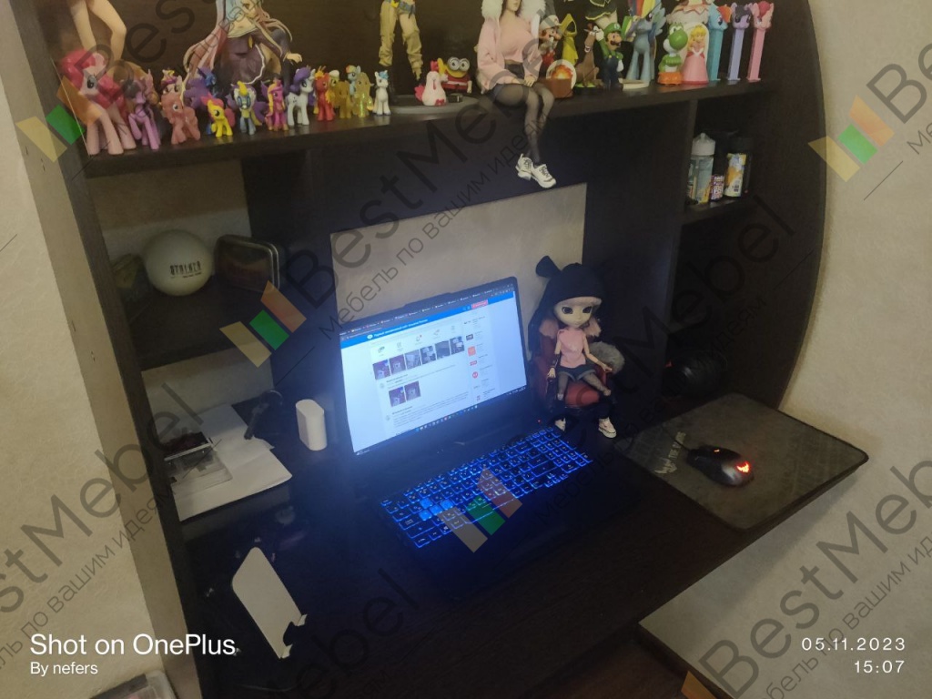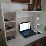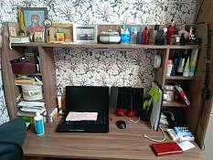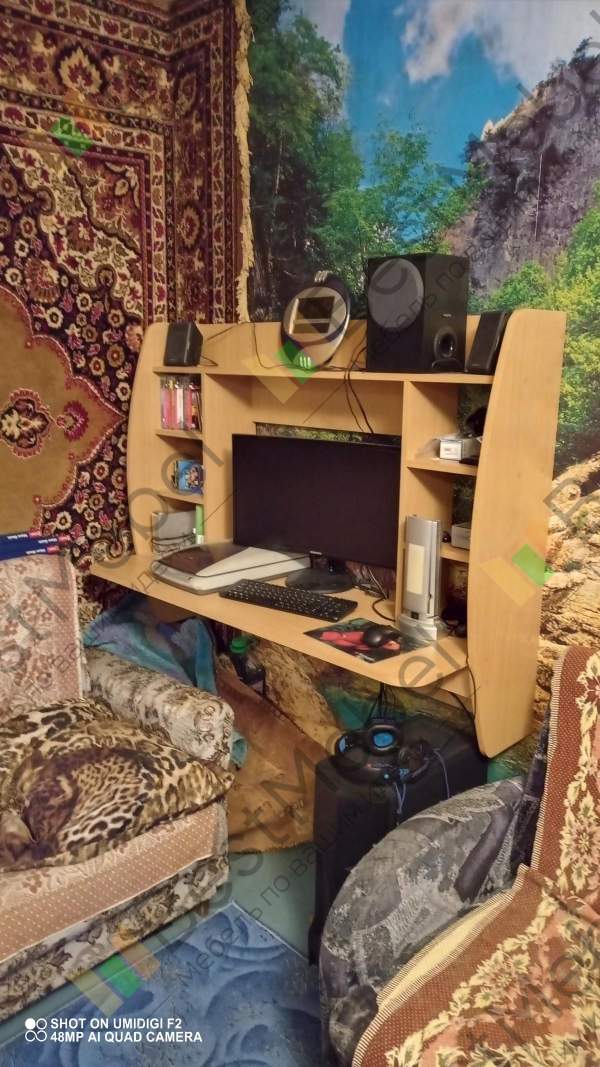 Приобрёл навесной стол длиной 1000 мм.Собрал и подвесил сам без проблем - нормальная инструкция, сборка несложная, повозился только с монтажом.В центральной нише расположил ноут, и для мыши места осталось мало. Так что лучше при такой компоновке брать подлиннее стол. Ячейки по бокам невысокие, из-за чего они неудобные для использования. Если было бы выполнено только одно разделение, получилось бы лучше.