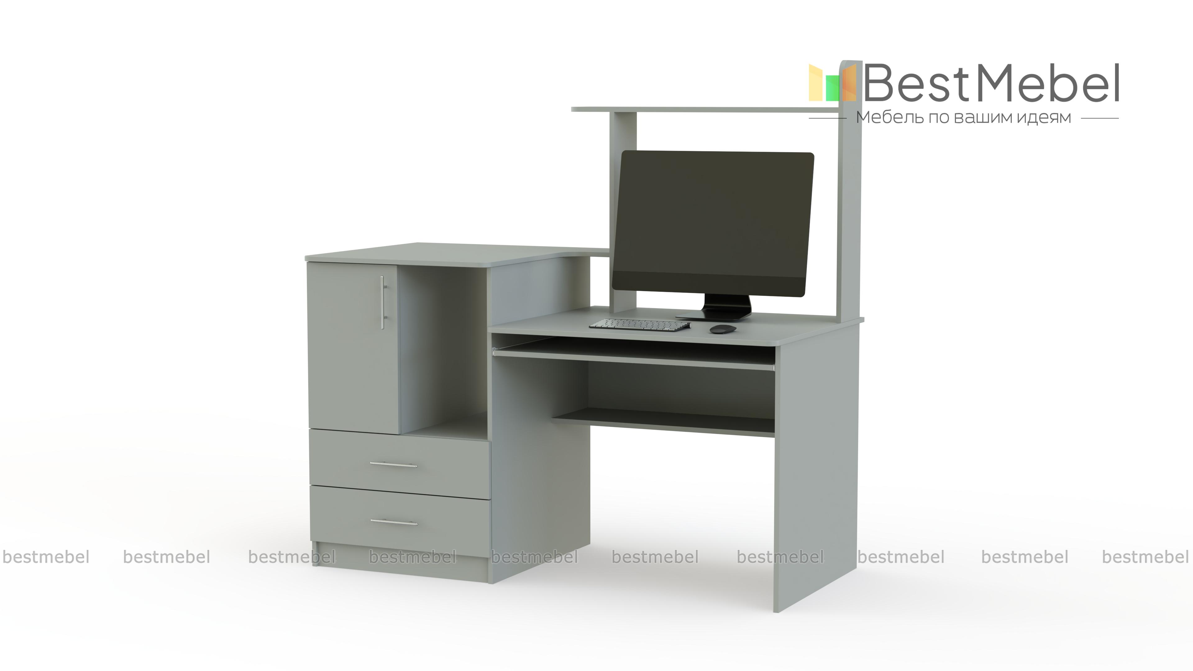 Компьютерный стол №2 Р является очень практичным предметом мебели. Он оснащен 2-я ящиками, отделением с распашной дверью, открытой нишей, выдвижной панелью для клавиатуры. На открытых полках можно разместить комнатные растения, декоративные украшения, фоторамки. Лаконичный стол выполнен в актуальных светлых тонах и оборудован просторной столешницей. Заказать данную модель можно в нашем интернет-магазине в разных размерах и цветовых решениях.