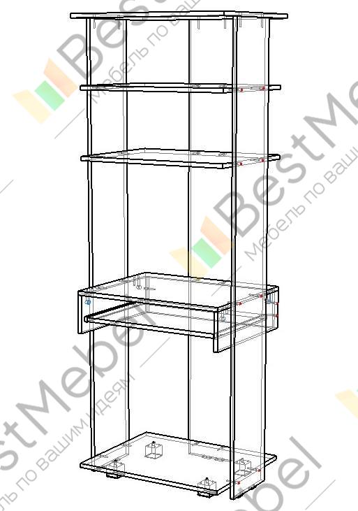 Модель очень оригинальная, предназначена для оборудования рабочего места, при значительной экономии свободного пространства. Стол представляет собой высокую тумбу оригинальной формы. Небольшое рабочее место вполне комфортное. Компьютерный стол КС 20-38 BMS имеет дополнительно две большие полки, на которых комфортно разместятся диски, книги и т.д. Купить такую модель вы можете, изменив изначальные параметры модели и подобрав цвет под остальную обстановку.