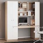 Стол компьютерный Макс 129 BMS поможет значительно сэкономить пространство и обустроить комфортное рабочее место в малогабаритном помещении. Столешница, дополненная выдвижным ящиком для мелочей, объединяет распашной шкаф для одежды и пенал с полками, надстройка с открытыми и застекленными секциями позволит разместить книги и папки. Корпус древесных тонов скомбинирован с лаконичными белыми фасадами, оснащенными ручками-кнопками. Купить стол компьютерный Макс 129 BMS приглашаем на сайт нашего интернет-магазина.