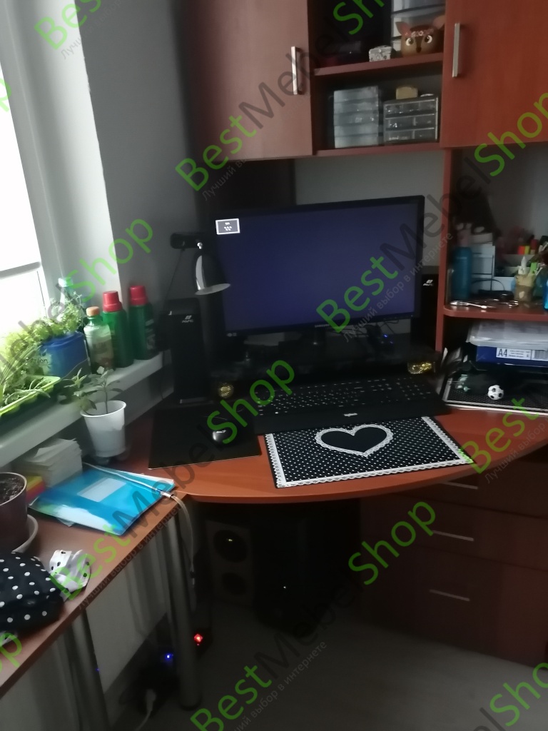 С выдвигающейся полкой лучше не брать, места будет меньше для ног. Хотя смотря какого размера стол. Я заказывала по своим размерам, поменьше, чтобы был на одной высоте с угловым комодом и не с угловой столешницей, а полукруглый, очень удобно. Длинная столешница на трех ножках соединяет стол и комод. Из минусов: как и с другой мебелью с этого сайта, непонятная инструкция по сборке, не все есть отверстия для фурнитуры. Фасады ящиков и фальш панели было сложно соединить, разметить отверстия под уже существующие. Обычно уже все просверлено, остается только прикрутить. Ручки тоже сами размечали.