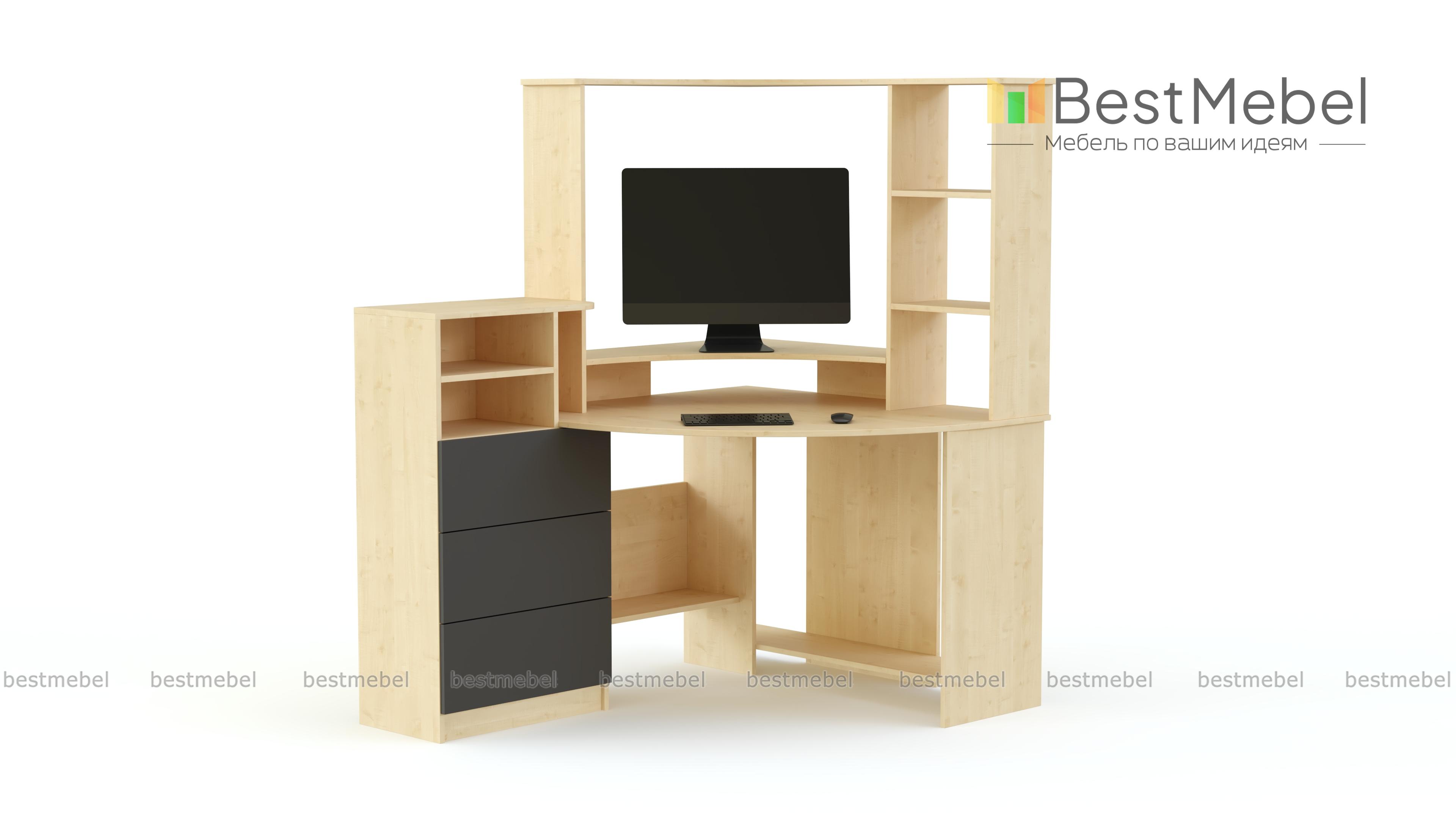Стол компьютерный МБ-44.1 BMS отличается практичной угловой конструкцией и поможет оборудовать комфортное, эргономичное рабочее место. Современная модель в сочетании светлых древесных тонов и эффектного терракотового фасада оборудована закругленной столешницей, нижними полками для бумаг, системного блока и боковым отделением с выдвижными ящиками и открытыми полками. Надстройка с подставкой под монитор и открытыми полками разместит книги и предметы декора. Купить стол компьютерный МБ-44.1 BMS вы сможете по лучшей цене в нашем интернет-магазине.