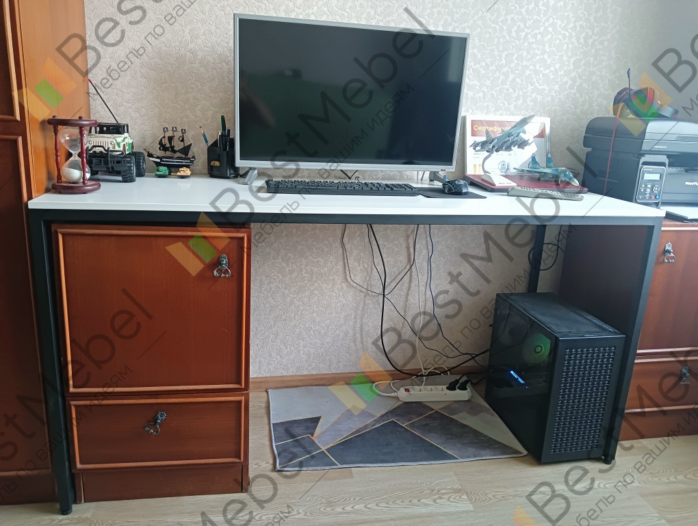 Отличный стол! Устойчивый и очень стильный! Возможность менять размеры на сайте позволило заказать столы нужного размера! Металлоконструкции очень качественный и легкие достаточно! Стол не закрывает радиатор (для тех у кого столы письменные стоят возле окна это важно).