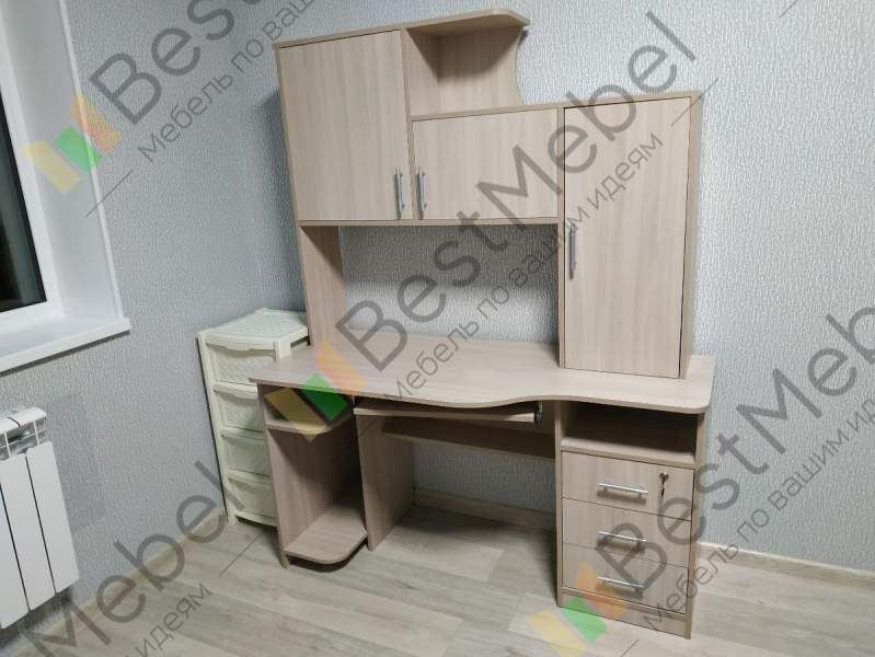 Заказ №1148765 Заказ 00000112856, изделие ЭСКИЗ №00000112856 Стол компьютерный СК-19 BMS (1400х1800х600), ссылка для отзыва https://www.bestmebelshop.ru/catalog/stoly-kompyuternye/stol-kompyuternyy-sk-19-bms/Недавно я приобрела компьютерный стол на сайте bestmebelshop, и хочу поделиться своим мнением о нём.Долго подбирала стол который мне бы хотелось в интернете и просто в магазинах мебели, и нашла наконец то, что мне хотелось у bestmebel. До этого заказывала у них шкаф, качество мне понравилось, поэтому решила заказать и стол тоже, тем более что после покупки шкафа были начислены бонусы и ими можно оплатить часть следующей покупки. У bestmebel есть замечательная услуга, что они делают изделия по необходимым тебе размерам и можно вносить изменения в стандартные модели столов , а так же выбрать материал и цвет, наполнение, фурнитуру изделия и др. Выбрала модель стола, которая наиболее мне подходила, на сайте, указала необходимые размеры и попросила добавить дополнительную стенку , сделать прямую столешницу . Изготовили очень быстро и доставили в срок! Пришло все целое, сколов и поврежденных деталей не было. Собирала самостоятельно.Сборка заняла немного времени, инструкции были понятными. Все детали подошли идеально, никаких проблем при сборке не возникло.Стол выглядит аккуратно и стильно. Материалы, из которых изготовлен стол, кажутся достаточно прочными и качественными. Поверхность гладкая, легко очищается от пыли и пятен. Стол имеет оптимальные размеры, достаточно просторный для размещения монитора, клавиатуры, мыши и других аксессуаров. Есть дополнительные полки и ящики для хранения документов и мелочей, что очень удобно. В целом, я очень доволен покупкой. Заказала ещё такой же рабочий стол ребёнку, только в другом цвете.Рекомендую bestmebelshop тем, кто ищет качественный и удобный рабочий стол для дома или офиса.