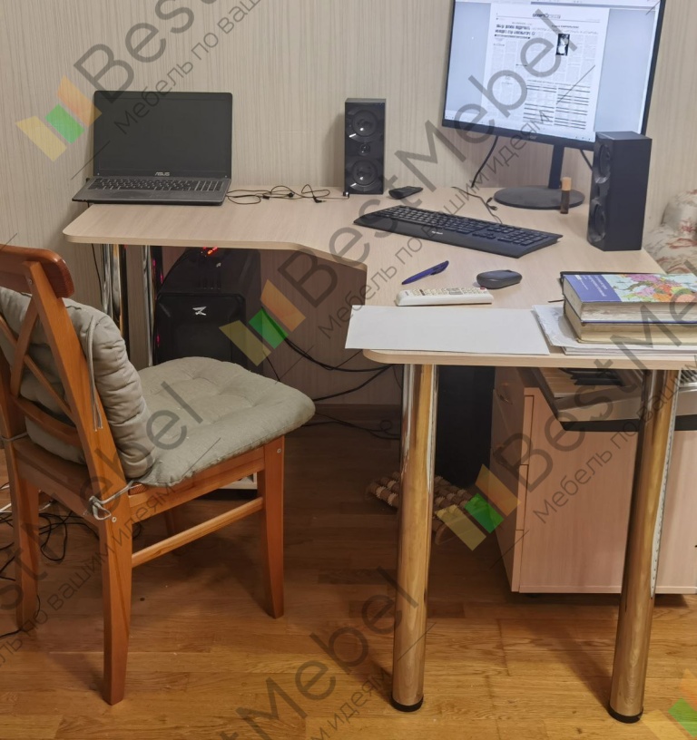 Наконец дошли руки до отзыва. Стол был куплен еще в январе этого года, собирала сама в одиночку, ну кот еще помогал, как мог)), сложностей не возникло, разве что шуруповерт был бы не лишним, но и так нормально. За все время использования никаких нареканий, стол крайне удобный, для тех кто дома по долгу сидит за компьютером и порой хочется вытянуть ножки)))Хочу выразить огромнейшую благодарность за терпение, учатие и содействие отделу проектирования BestMebelShop, поименно увы не знаю кто помогал, но все пожелания были учтены и размеры полностью соответствуют заявленному мною макету, что для меня было критично поскольку живя в квартире-студии мебель размещается по принципу "тетриса" ни 1 кв.см. не должно зазря пропадать! Подставка под системный блок также удобна и проста в сборке, в любой момент можно подвинуть системник, если нужно убраться или что-то переключить, а не сгибаться в три погибели и лезть под стол.)