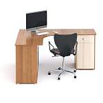 Угловой компьютерный стол Марта 1 BMS - отличный домашний или офисный вариант с удобной системой хранения. Просторная угловая столешница опирается на модуль с открытыми секциями для книг, папок и системного блока и классическую тумбу с ящиком и распашной дверцей. Лаконичный современный дизайн стола подчеркивает теплая древесная гамма. Купить угловой компьютерный стол Марта 1 BMS с возможностью выбора размеров, цвета и фурнитуры приглашаем в наш интернет-магазин.