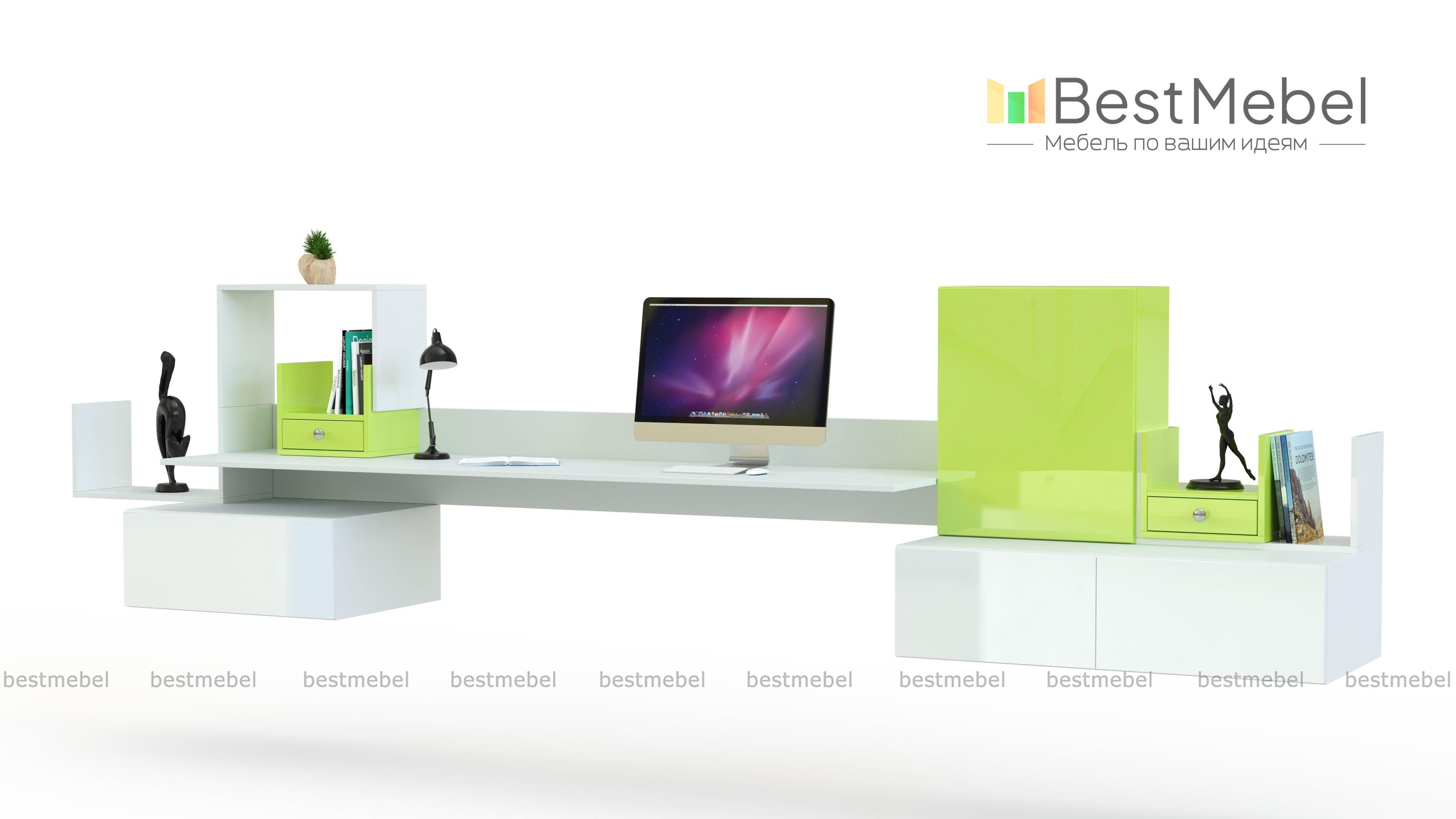 Навесной письменный стол Прима 21 BMS представляет собой стильную геометричную композицию, которая органично впишется в интерьер современной детской. Настенная конструкция включает в себя широкую столешницу, за которой могут одновременно разместиться двое детей, вертикальные и горизонтальные шкафчики с глухими фасадами и открытые полки для книг и учебных пособий. Купить навесной письменный стол Прима 21 BMS и освободить центральную часть комнаты для игр вам поможет наш интернет-магазин.