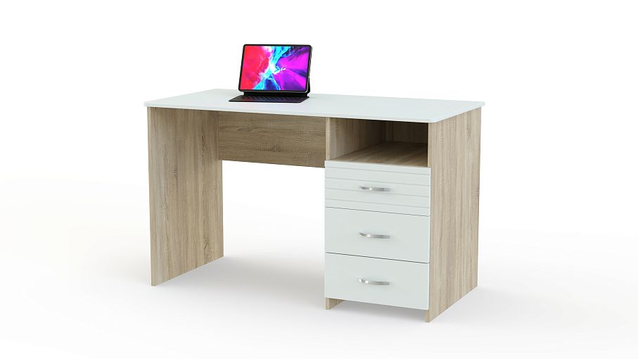 Письменный стол Британия 52.13 BMS – это стильная мебель, которая придется по нраву всем любителям современного стиля. Модель обладает небольшими размерами и без труда впишется в интерьер практически любого домашнего помещения. Изделие располагает тремя широкими ящиками выдвижного типа и большой столешницей. В ящиках удобно хранить письменные и канцелярские принадлежности, декоративные украшения, вспомогательную литературу, документы. Купить письменный стол Британия 52.13 BMS по низкой цене можно на портале нашего интернет-магазина не прилагая особых усилий.
