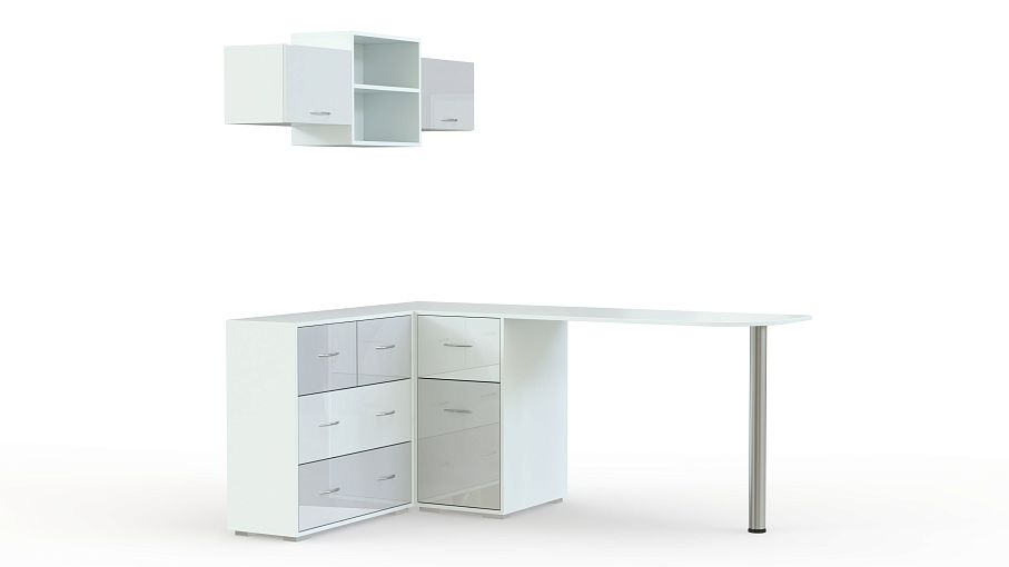 Письменный стол Глэм 3 BMS – это практичная угловая модель, совмещенная с комодом. Прямоугольная, безопасно скругленная столешница на хромированной опоре дополнена тумбой с распашным отделением и выдвижным ящиком для канцелярских мелочей и комодом с ящиками разных размеров. Разместить в зоне быстрого доступа книги поможет навесная полка с глухими и открытыми секциями. Купить письменный стол Глэм 3 BMS с глянцевыми фасадами вы сможете в нашем интернет-магазине.