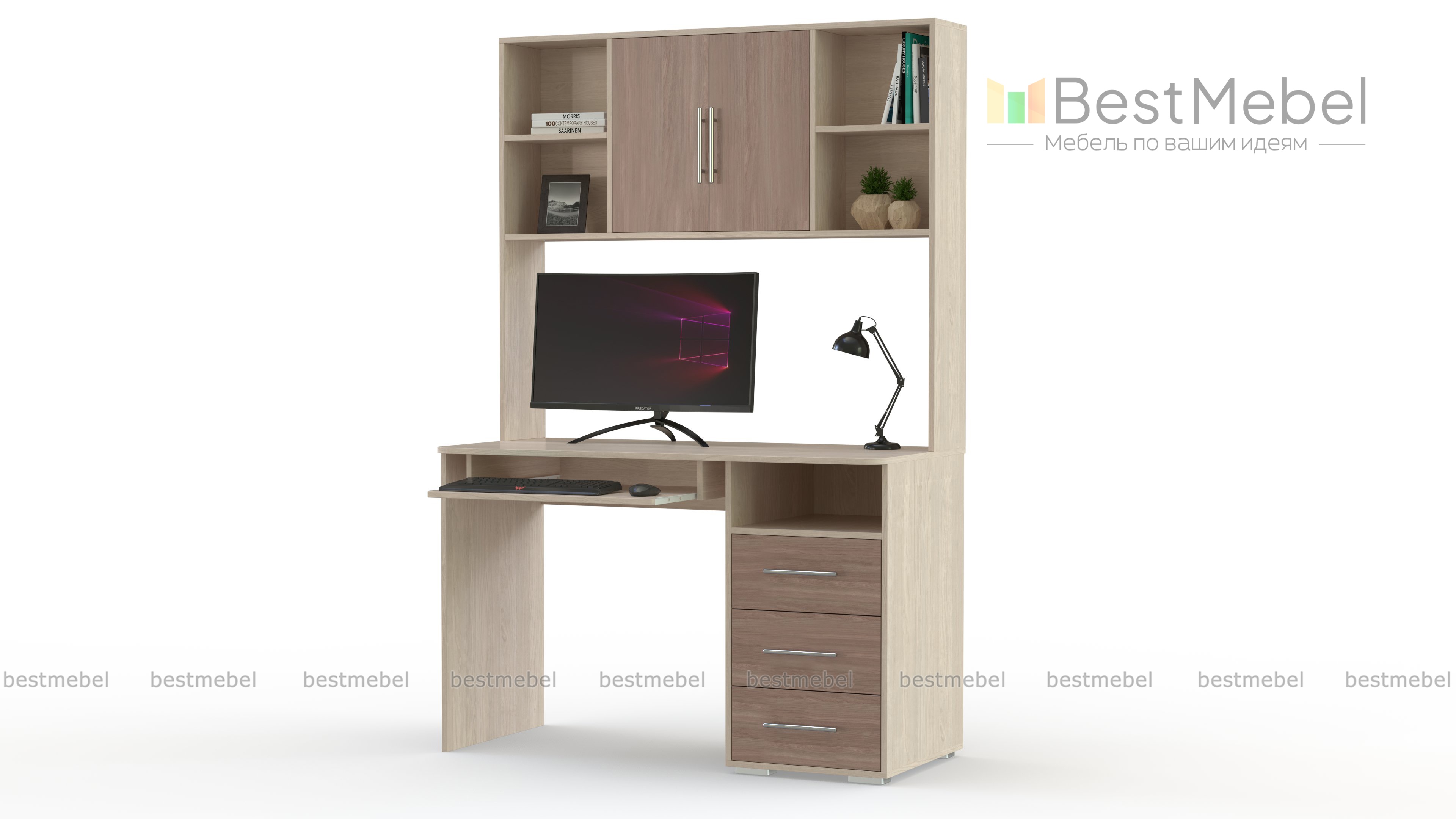 Письменный стол GSR-3015 BMS – это продуманная до мелочей композиция для современной молодежной комнаты. Модель выполнена с учетом всех требований ребенка и удобна в эксплуатации. Просторная столешница оснащена полкой под клавиатуру и тумбой с несколькими выдвижными ящиками. Для экономии пространства в комнате и хранения книг, канцелярии, имеется функциональная надстройка с разнотипными отделами. Эргономичные хромированные ручки, спокойное цветовое решение – главное дополнение невероятно качественной мебели. Письменный стол GSR-3015 BMS можно купить по низкой цене в нашем магазине.