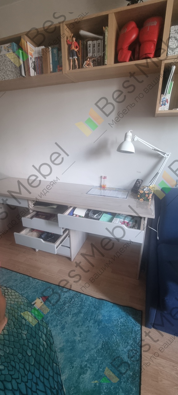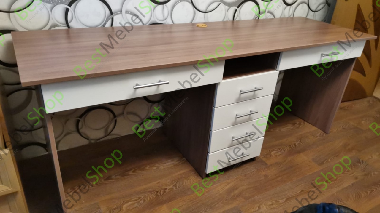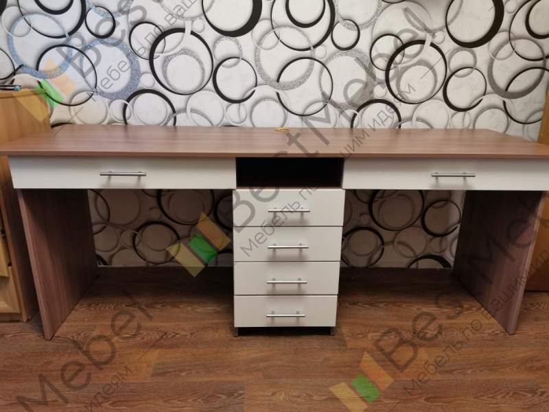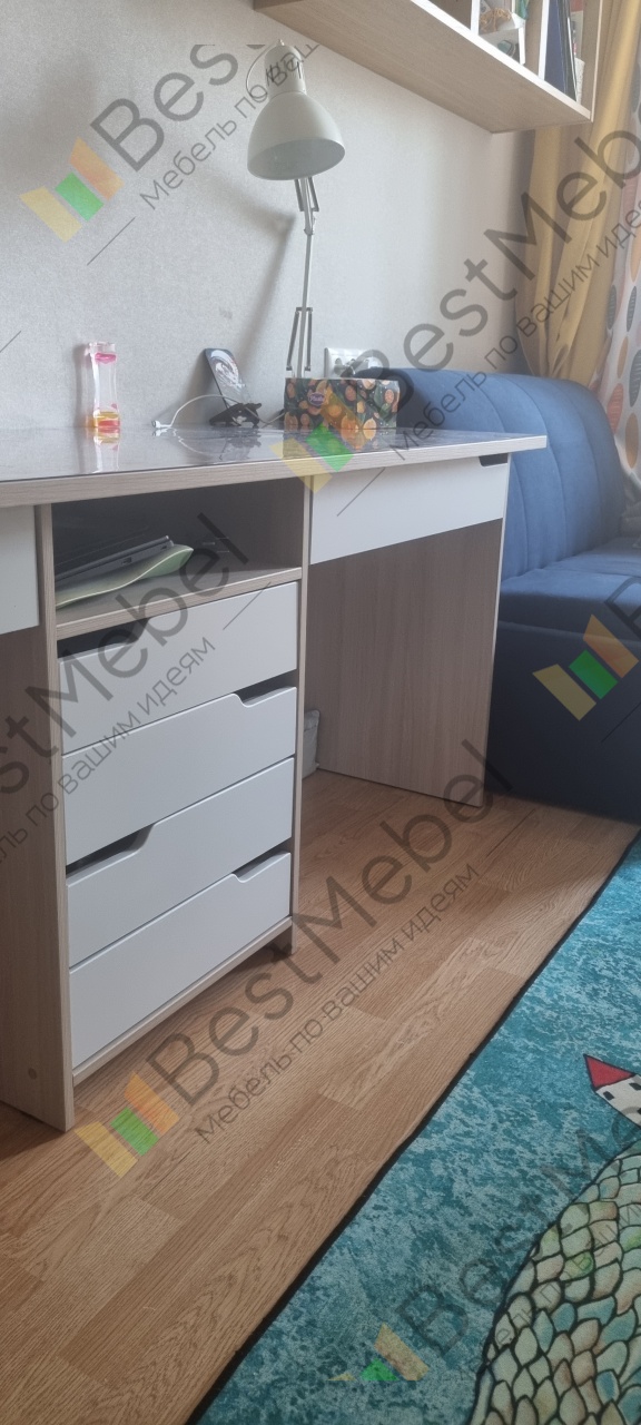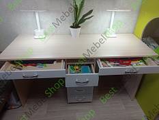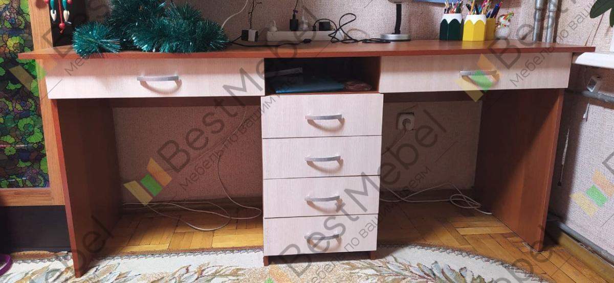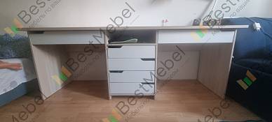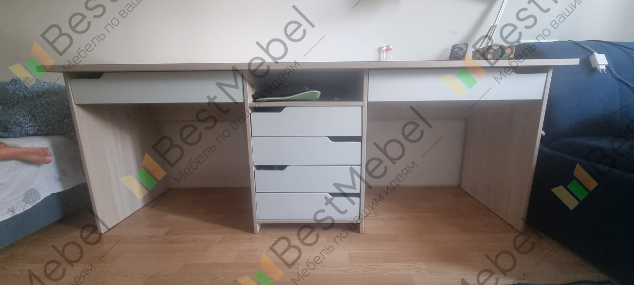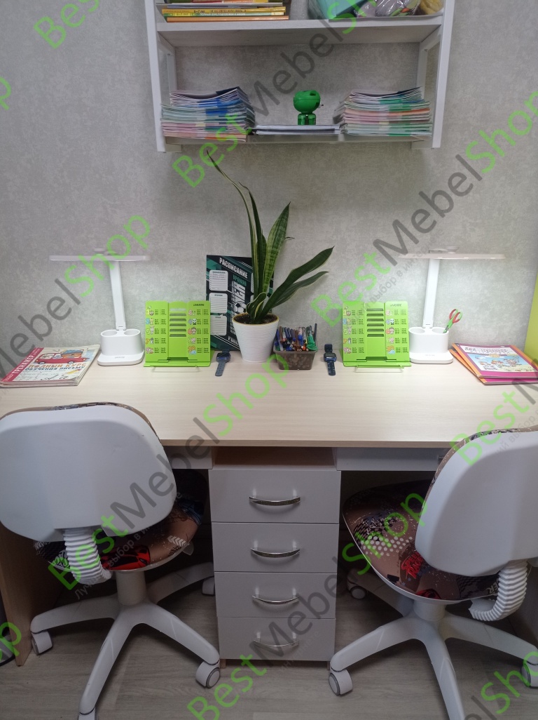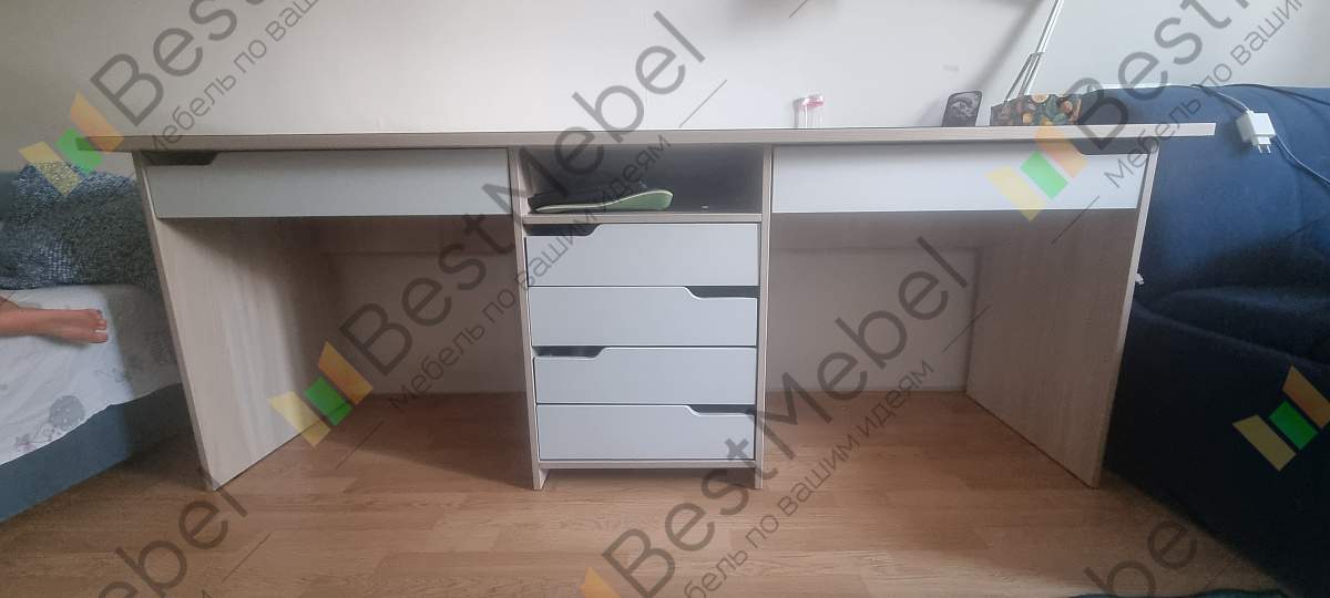 Приобрели данный стол для двойни, очень удобный и функциональный, самое то для маленькой квартиры, причём при заказе мы ещё меняли размер в сторону уменьшения длины столешницы, что практически не отразилось на цене, это очень приятно. Собрали легко сами, была подробная инструкция и что удобно - все детали были пронумерованы стикерами, что ещё больше облегчило сборку.Ящики вместительные и что важно : их 4! По два на каждого ребёнка, не будет споров кому сколько. И под рабочим местом очень вместительный ящик для ручек и мелочей. Очень довольны столом, у нас в городе таких не нашлось, спасибо вам за хорошую мебель! Номер заказа 00000448827