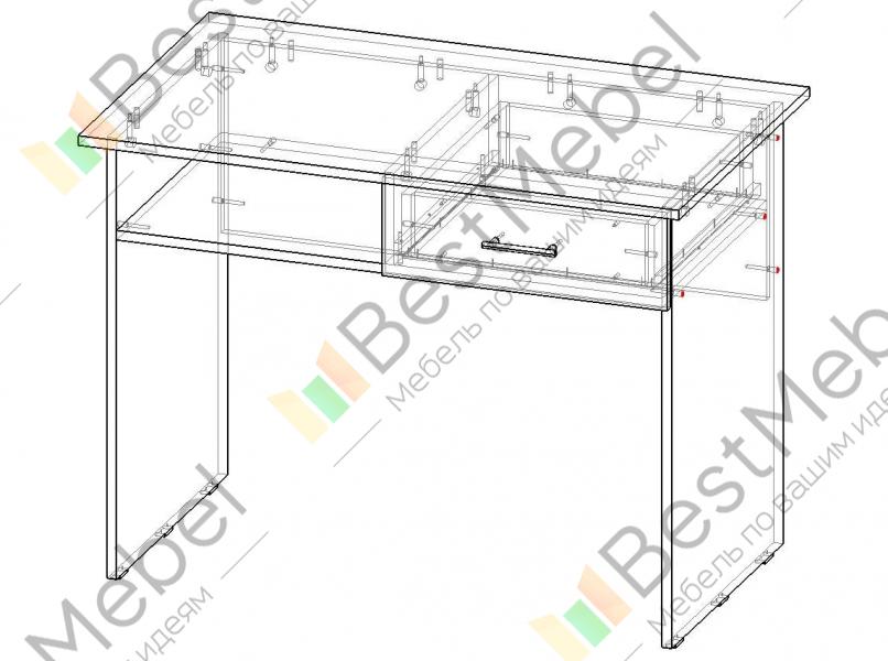 Письменный стол СП-1 BMS является практичной мебелью и придется по вкусу всем любителям современного стиля. Модель довольно удобная в использовании и без труда впишется в интерьер практически любого домашнего помещения. Изделие располагает ящичком выдвижного типа, открытыми полочками и большой столешницей. В них можно поместить различные бытовые предметы, декоративные украшения, канцелярские и письменные принадлежности, документы. Купить письменный стол СП-1 BMS по низкой цене можно на портале нашего интернет-магазина буквально за пару кликов.