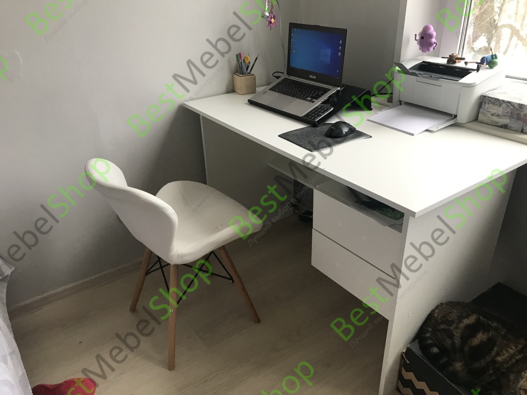 Стол очень удобный для работы. Много места, все помещается. Ручки на тумбочку не прикручивали, но они в наличии. Покупкой очень довольна