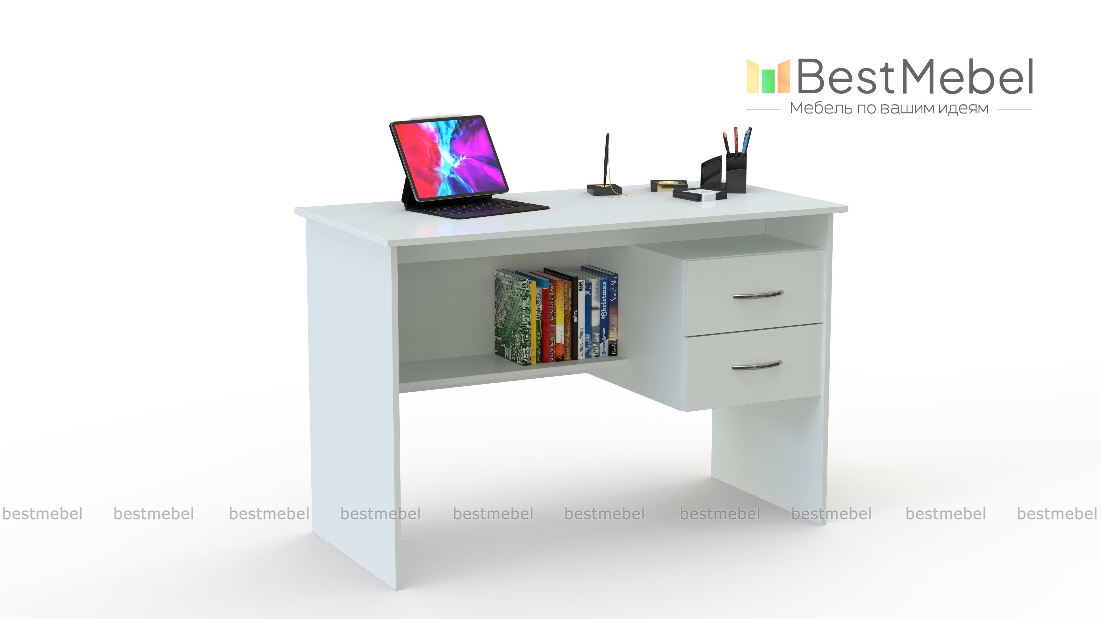 Письменный стол СПМ-07.1Б BMS отличается продуманным пространством подстолья. Модель оборудована двумя выдвижными ящиками для хранения самого важного. Также есть практичная открытая полка, на которую можно поставить скоросшиватели, органайзеры или небольшую офисную технику. Это экономит место на столе, оставляя столешницу свободной. Такую продуманную модель можно приобретать для работы дома или в офисе. Цвет как и габариты можно изменить. Заказать письменный стол СПМ-07.1Б BMS можно в нашем интернет-магазине.
