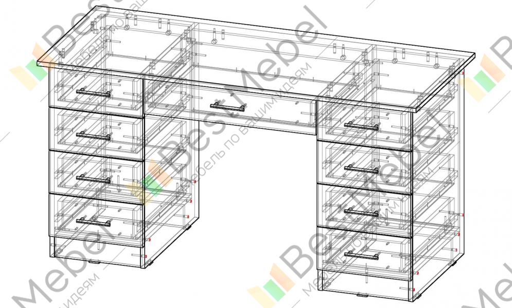 Отличный стол: вместительный за счет большого количества ящиков, все документы поместились в столе. Очень порадовало, что можно выбрать из большой гаммы цветов нужный цвет стола и даже фурнитуры.Доставили быстро и в срок. Заказывала сборщика из этой фирмы: сборщик приехал на следующий день после доставки, собрал быстро и качественно. И еще : цена за стол меня очень порадовала, поэтому и заказывала здесь. Рекомендую эту организацию и буду сама еще заказывать.