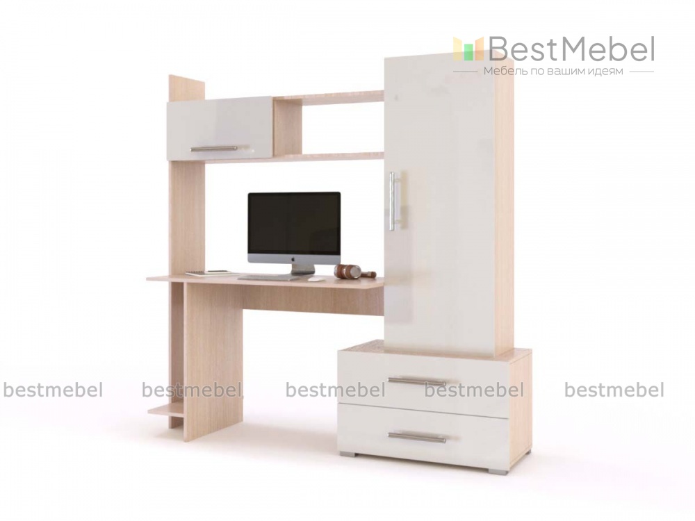 Стол письменный Лаки ПКС-7 BMS поможет оборудовать полноценную рабочую зону в современном домашнем интерьере. Стильная композиция, выполненная в теплых древесных тонах с имитацией фактуры дерева и белом глянце, включает в себя просторную, прямоугольной формы столешницу, нишу под системный блок, выдвижные ящики, пенал и надстройку. Продуманная система хранения позволит разместить все необходимое для работы или учебы в зоне быстрого доступа. Купить стол письменный Лаки ПКС-7 BMS выгодно приглашаем в наш интернет-магазин.