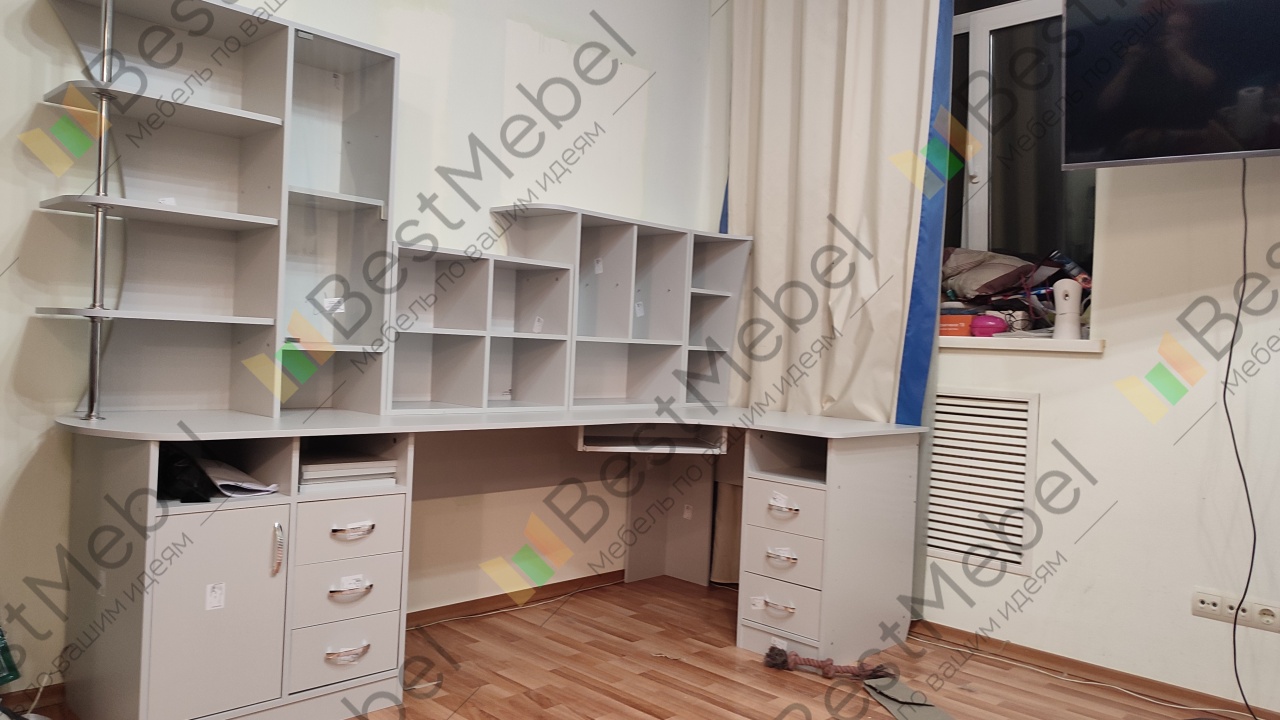 Угловой письменный стол для двоих Калифорния 7 BMS представляет собой многофункциональную композицию, включающую в себя все необходимое для полноценной учебы или работы. Столешница Г-образной формы, безопасно скругленная по углам, дополнена вместительными тумбами, надстройкой с застекленными полками и стеллажом, а также навесными полками для книг и предметов декора. Купить угловой письменный стол для двоих Калифорния 7 BMS, выполненный в теплой коричнево-бежевой гамме, приглашаем в наш интернет-магазин.