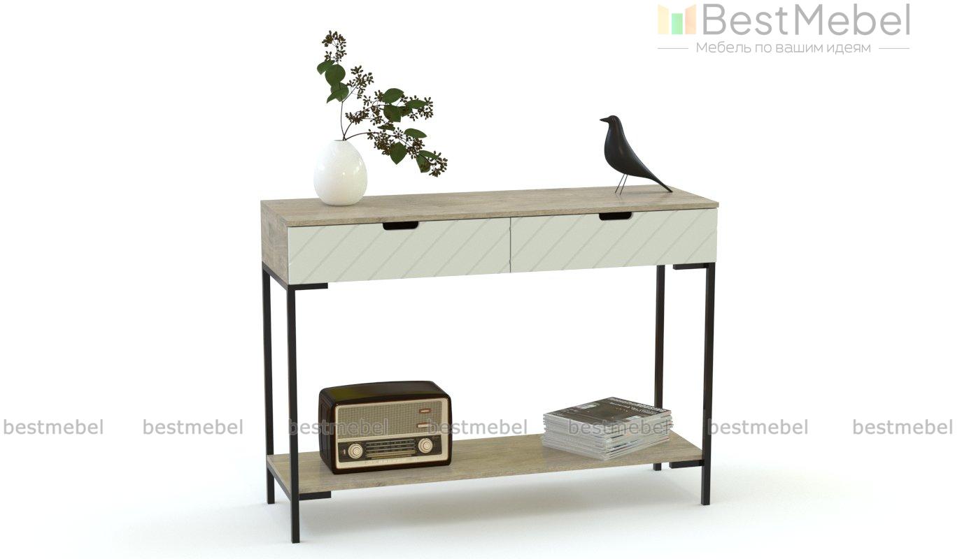 Консольный стол Клора 10 BMS – это актуальный дизайн в стиле лофт и практичная конструкция. Прямоугольный столик оборудован просторной столешницей, под которой располагаются два выдвижных ящика для хранения мелочей, и открытой нижней полкой. В оформлении модели скомбинированы корпус теплого крафтового оттенка и платиновый фасад с фрезеровкой, а устойчивость и легкость конструкции обеспечивают опоры из металлического профиля. Купить консольный стол Клора 10 BMS вы сможете по доступной цене на сайте нашего интернет-магазина.