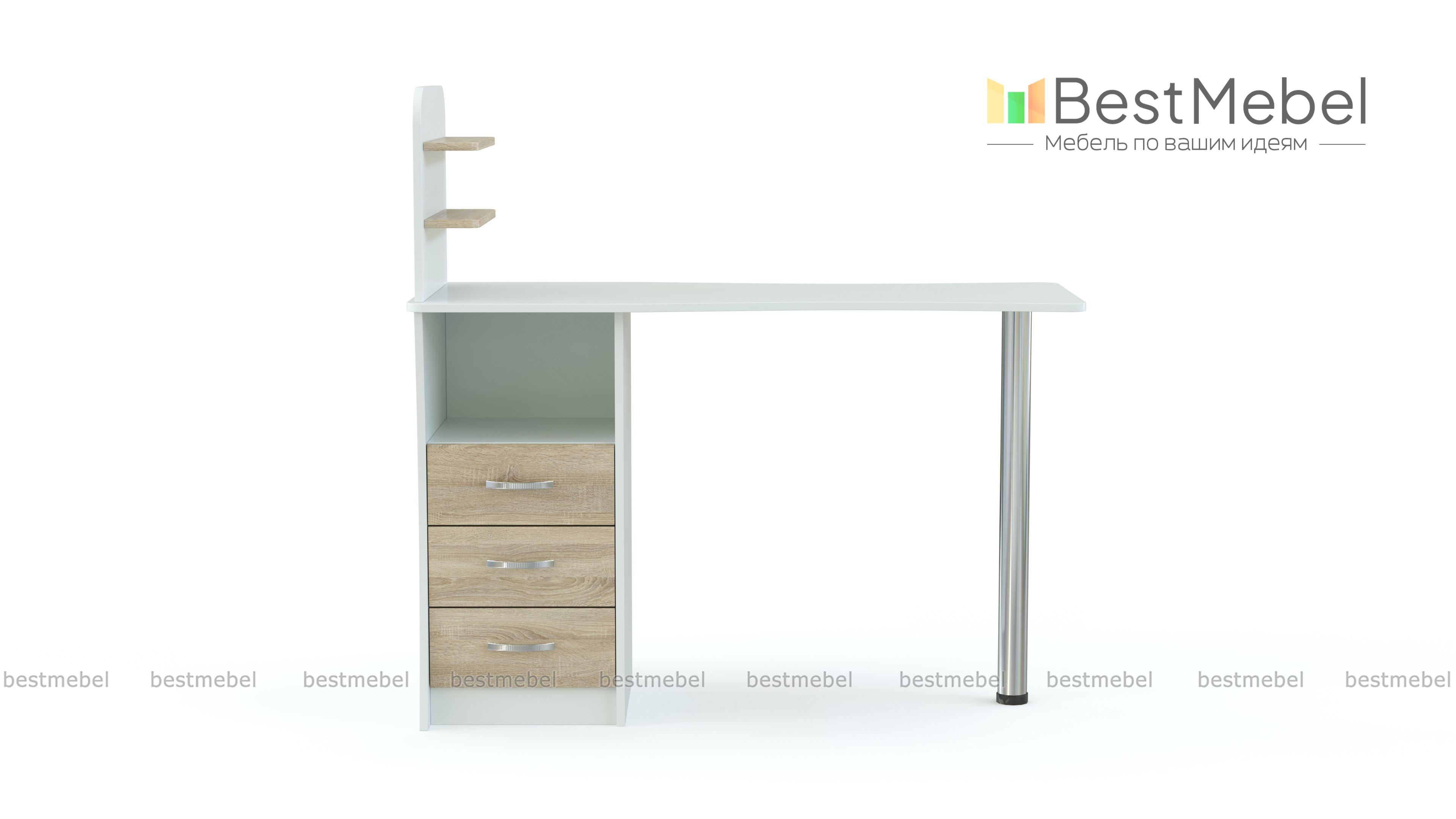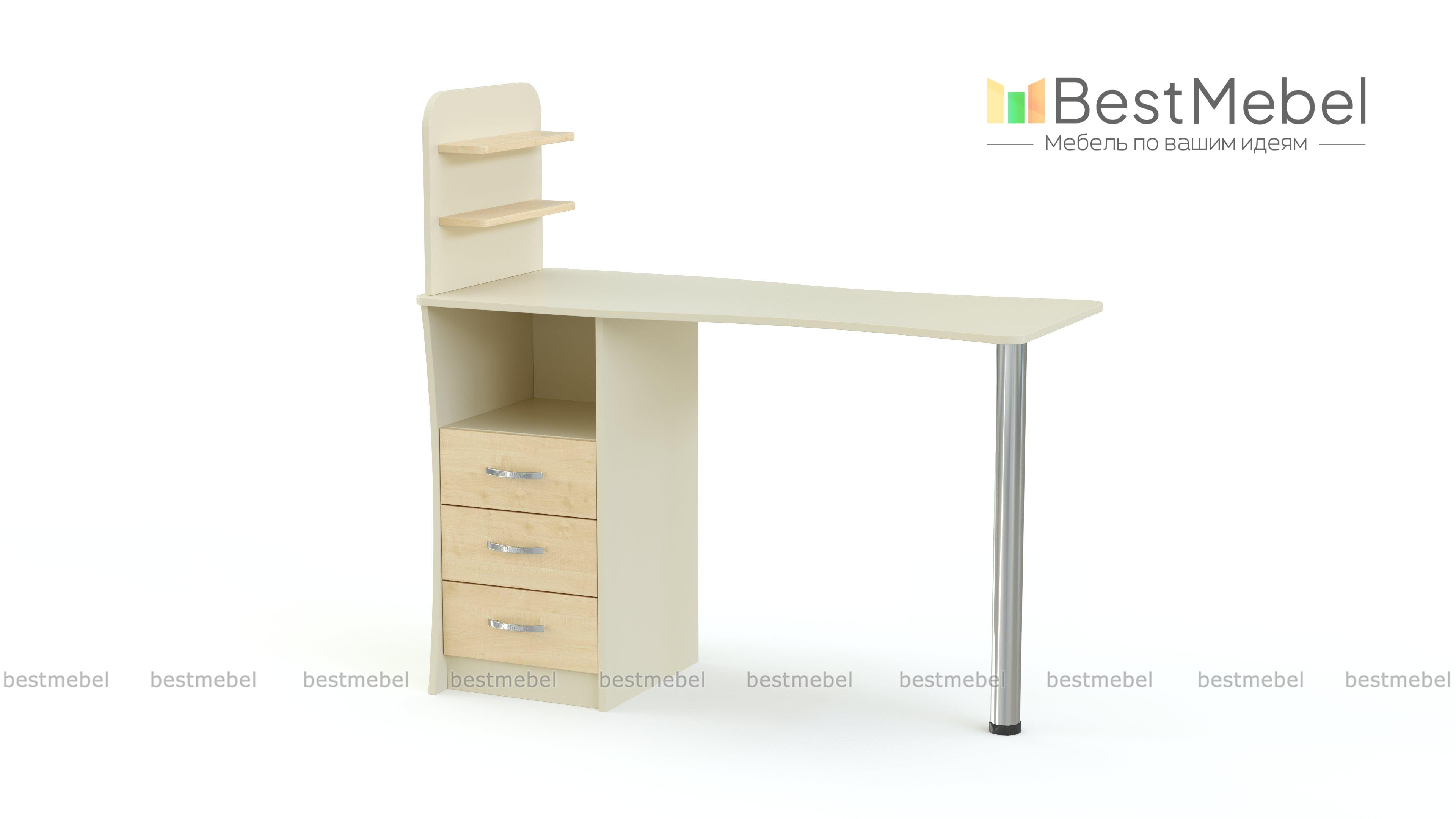 Маникюрный стол Паула BMS привлечет внимание посетителей ярким современным дизайном. Оригинальная модель оборудована эргономичной столешницей, тумбой с фигурно вырезанными боковинами, нишей и тремя выдвижными ящиками для хранения материалов и инструментов, а также подставкой под лаки. Устойчивость и визуальную легкость конструкции придает хромированная опора. Купить маникюрный стол Паула BMS с контрастным фасадом вы сможете в нашем интернет-магазине.