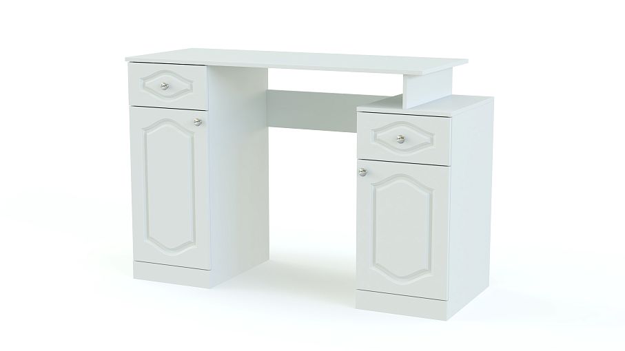 Стол макияжный Арина BMS станет практичным дополнением уютного спального интерьера в классическом стиле. Двухтумбовая модель оборудована просторной столешницей, на которой легко разместятся необходимые уходовые средства, выдвижными ящичками и распашными отделениями с полками для аксессуаров, украшений, косметики и личных вещей. Фасады универсального белого оттенка декорированы изящной фрезеровкой. Купить стол макияжный Арина BMS для комфортного ухода за собой приглашаем в наш интернет-магазин.