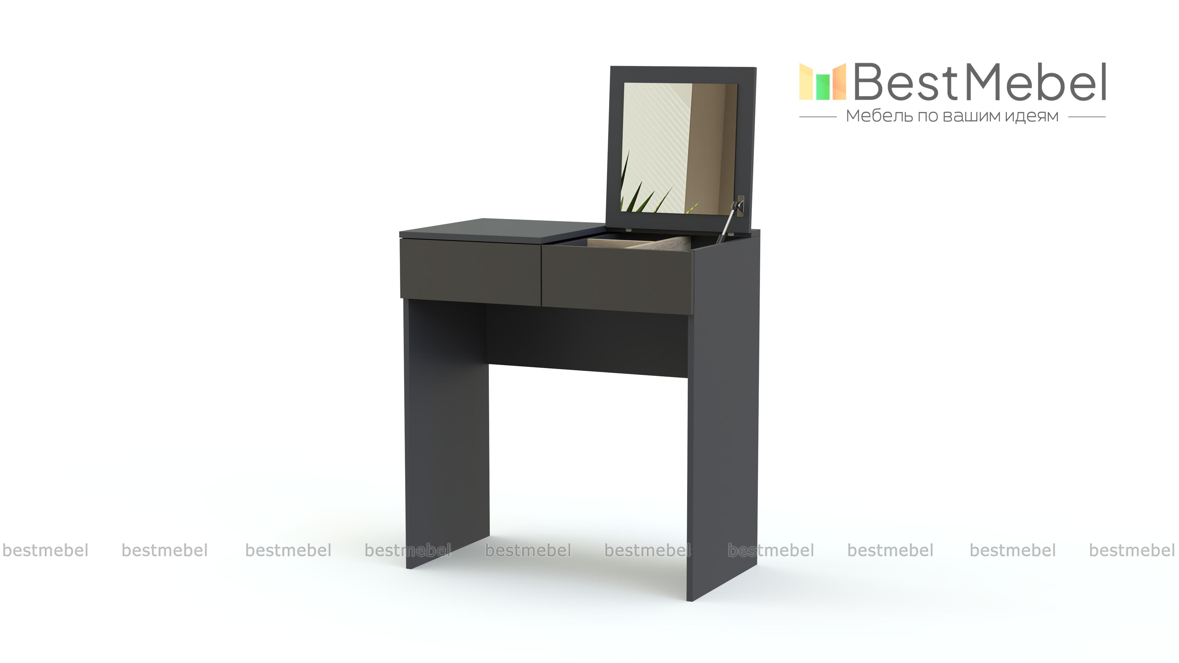 Этот миниатюрный столик легко найдет себе место и в небольшой спальне, и в салоне красоты. Раскладная конструкция позволит использовать его и как обычный рабочий, и превратит в стильную вещь для мэйк – апа. Столешница удобно разделена на секции, одна из них откидная, с зеркалом, вторая остается столиком. Два ящика - разделенный перегородками для мелочей и просторный выдвижной для предметов побольше. Выполненные в контрастном цвете, они выглядят на белоснежном фоне роскошно и нестандартно, делая туалетный столик BRIMNES BMS по – настоящему очаровательным.