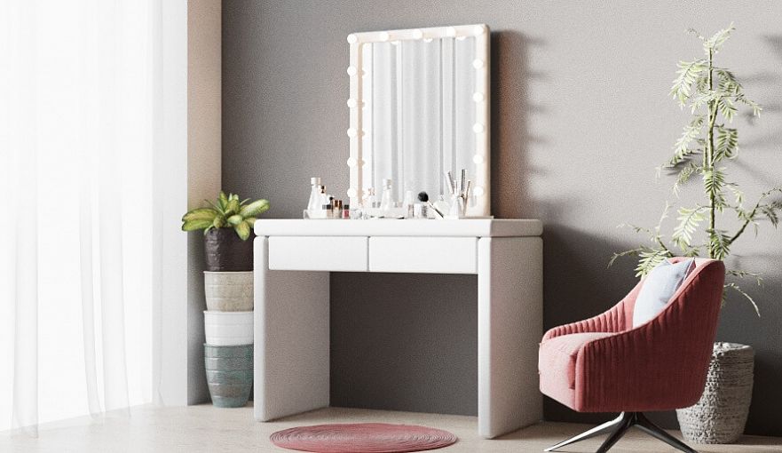 Туалетный столик Хлоя 17 BMS станет не только практичным дополнением меблировки, но и элементом дизайна. Скругленные линии и мягкая обивка в белой экокоже придают модели футуристичный вид и эффектно смотрятся в ультрасовременных интерьерах. Макияжный столик отличается просторной рабочей поверхностью и оборудован двумя выдвижными ящиками для мелочей. По периметру закрепленного на столешнице вертикального зеркала располагаются светодиодные лампочки. Купить туалетный столик Хлоя 17 BMS приглашаем в наш интернет-магазин по лучшей цене.