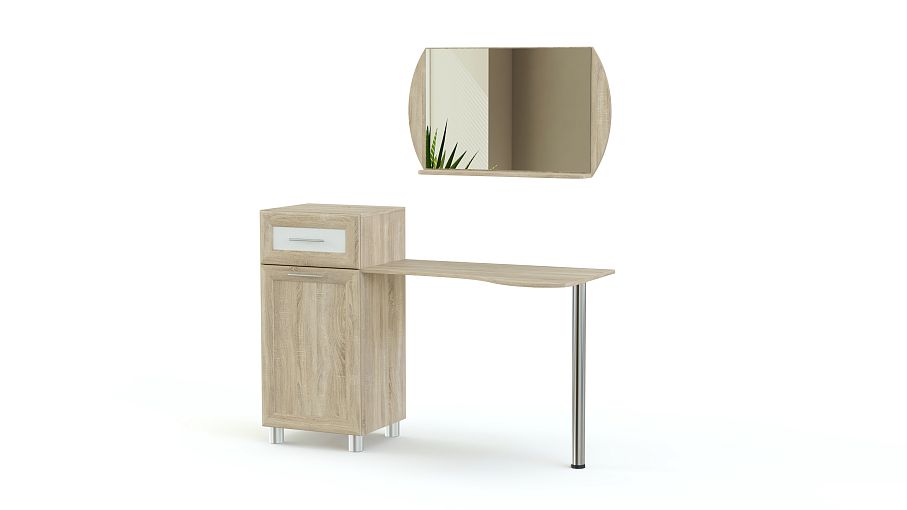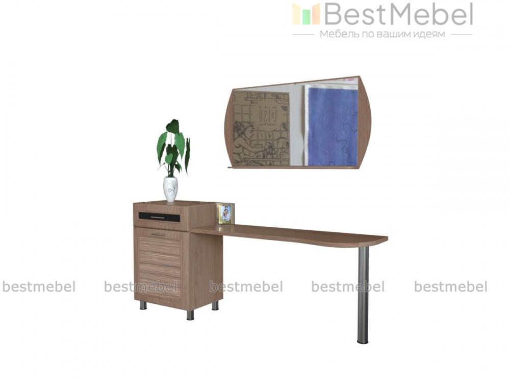 Туалетный столик Мелисса СТ 814 BMS – многофункциональная модель, которая совмещает рабочую поверхность эргономичной формы с удобной системой хранения. Устойчивая конструкция с хромированной опорой с одной стороны и тумбой с другой станет практичным дополнением комплекта для спальни в современном стиле. Благодаря выдвижному ящику и просторному отделению с полкой вы сможете разместить как аксессуары, так и разнообразные уходовые средства. Купить туалетный столик Мелисса СТ 814 BMS, подобрав цветовое решение, приглашаем в наш интернет-магазин.
