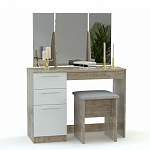 Туалетный столик Модерн 2М BMS выполнен в трендовом сочетании натуральных оттенков с имитацией древесной текстуры и белого. Трюмо оборудовано тумбой с тремя выдвижными ящиками для удобного хранения косметики, украшений и аксессуаров, а на столешнице располагается большое трехстворчатое зеркало. С комфортом расположиться за макияжным столиком поможет банкетка с мягкой обивкой сиденья. Купить туалетный столик Модерн 2М BMS вы сможете на сайте нашего интернет-магазина.