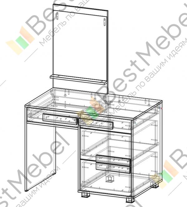 Туалетный столик СТ-5 Арт 155 BMS – стильный предмет интерьера для современной спальни. Закрепленное на столешнице зеркало дополнено узкой полочкой для мелочей. Также модель оснащена выдвижным ящиком и боковой тумбой для хранения уходовых средств и бумаг. Интересно смотрится этот простой функциональный столик за счет необычной отделки фасадов, модной цветовой гаммы и высоких ножек тумбы. Доступный по цене, туалетный столик СТ-5 Арт 155 BMS будет отличным приобретением для дополнения спального гарнитура или установки в прихожей.