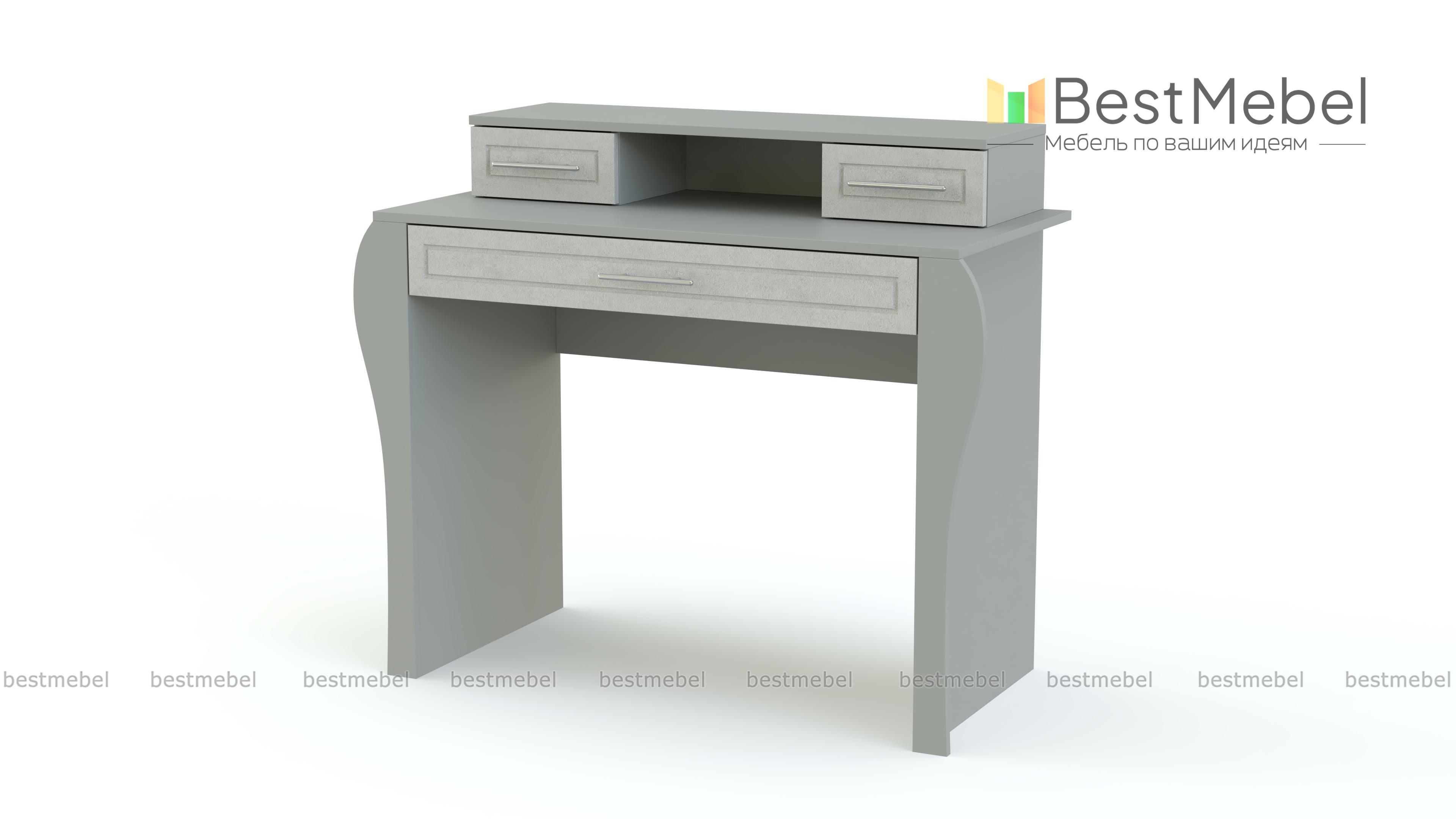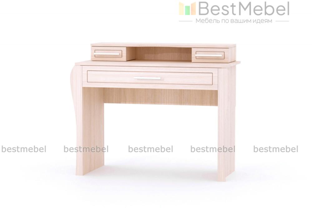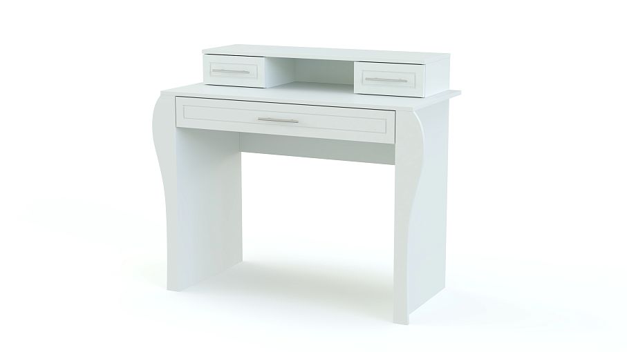 Туалетный столик Виола-2 BMS идеально впишется в легкий и светлый классический интерьер. Изящная модель выполнена в светлых тонах и декорирована фигурными опорами, неброской фрезеровкой и элегантными ручками. Столик создаст в комнате романтичную атмосферу и сделает уход за собой приятным и комфортным. Для хранения под рукой косметики, парфюмерии и аксессуаров модель оборудована широким выдвижным ящиком и надстройкой с двумя ящиками малыми. Купить туалетный столик Виола-2 BMS приглашаем по отличной цене в наш интернет-магазин.