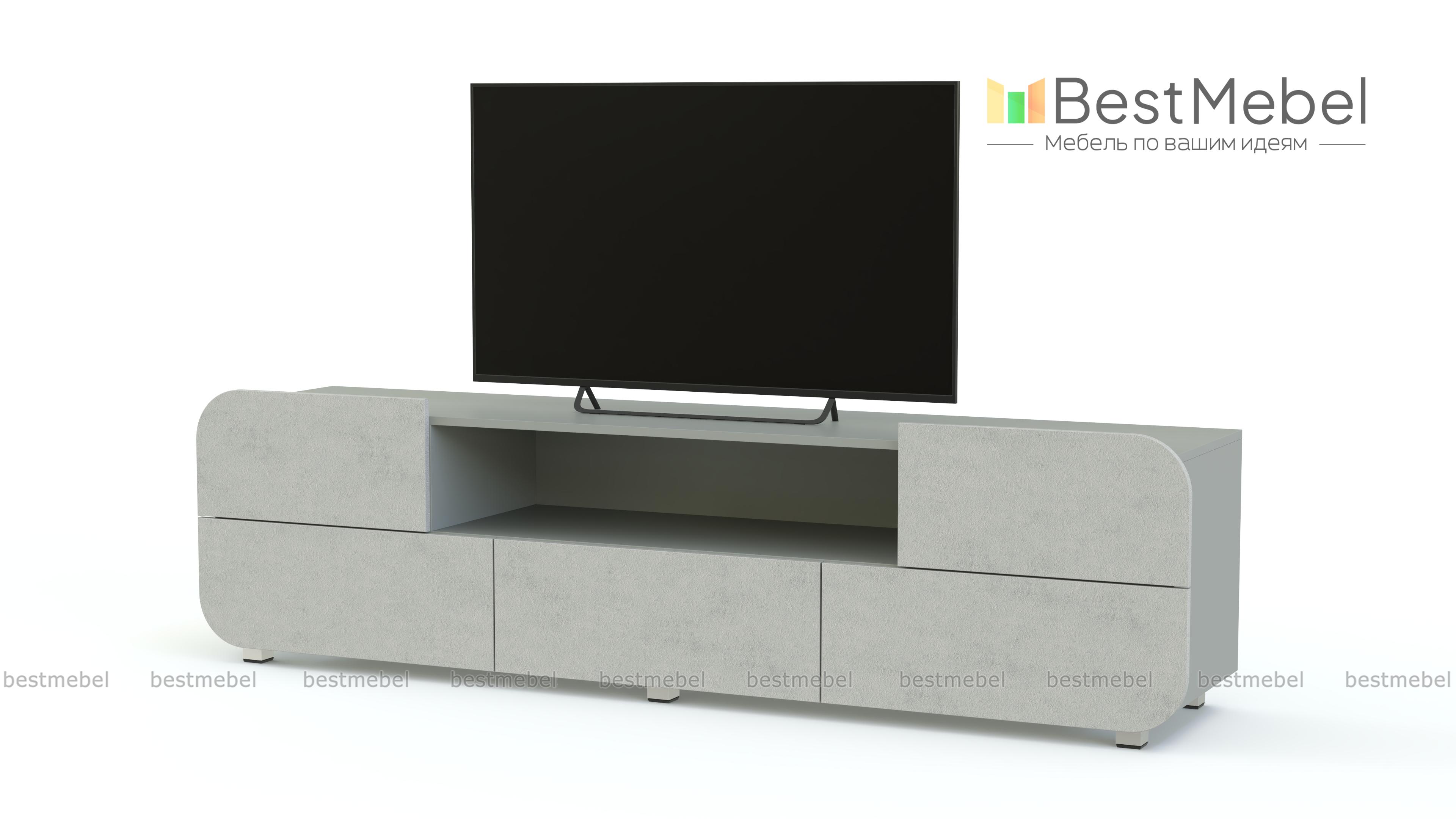 Тумба под ТВ Модерно 9.1 BMS – вместительная удлиненная модель в современном стиле. Плавные линии матовых фасадов станут эффектным дополнением интерьера в стиле минимализм или хай-тэк. Продуманная конструкция включает все необходимое для удобного размещения техники, книг и мелочей – просторную столешницу, глубокую нишу и пять выдвижных ящиков без ручек. Купить тумбу под ТВ Модерно 9.1 BMS, подобрав оптимальное цветовое сочетание, вы сможете в нашем интернет-магазине.