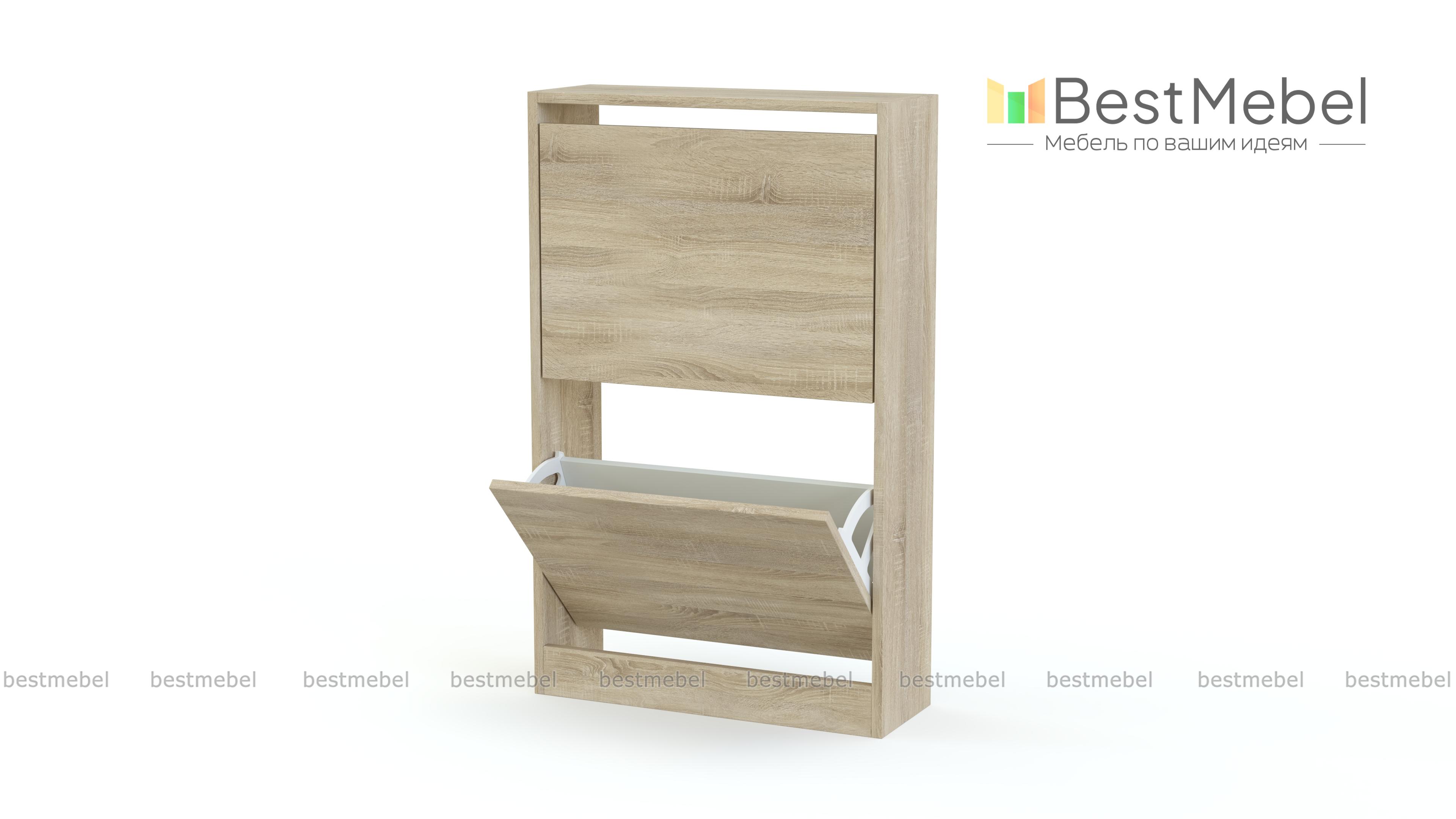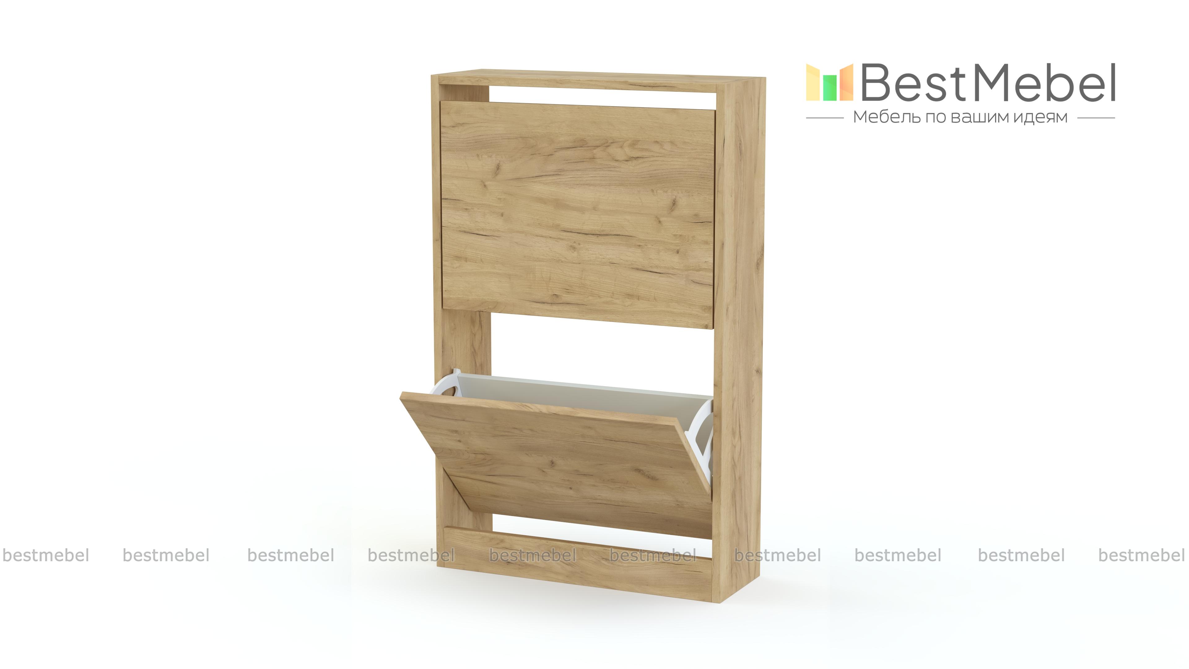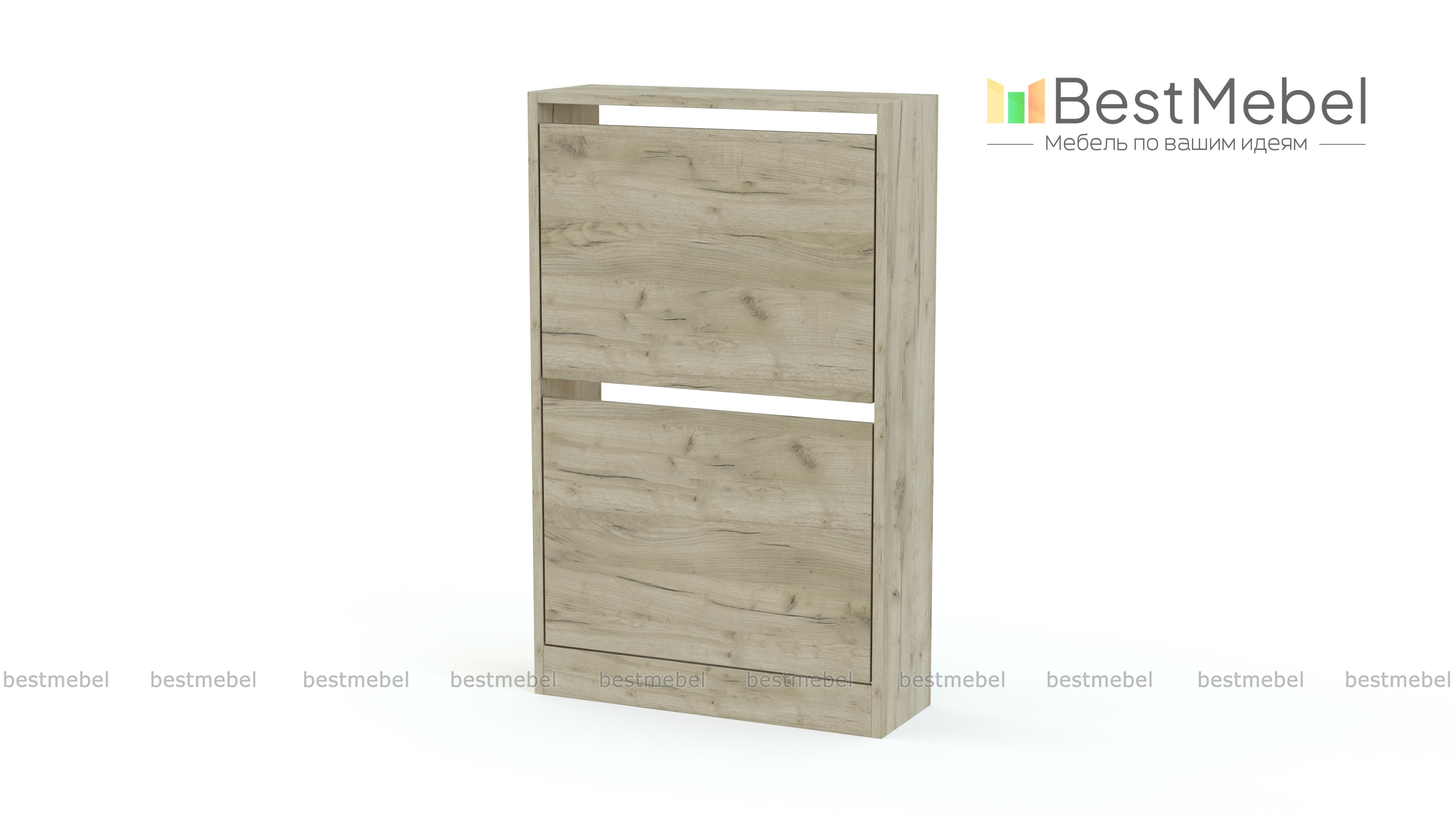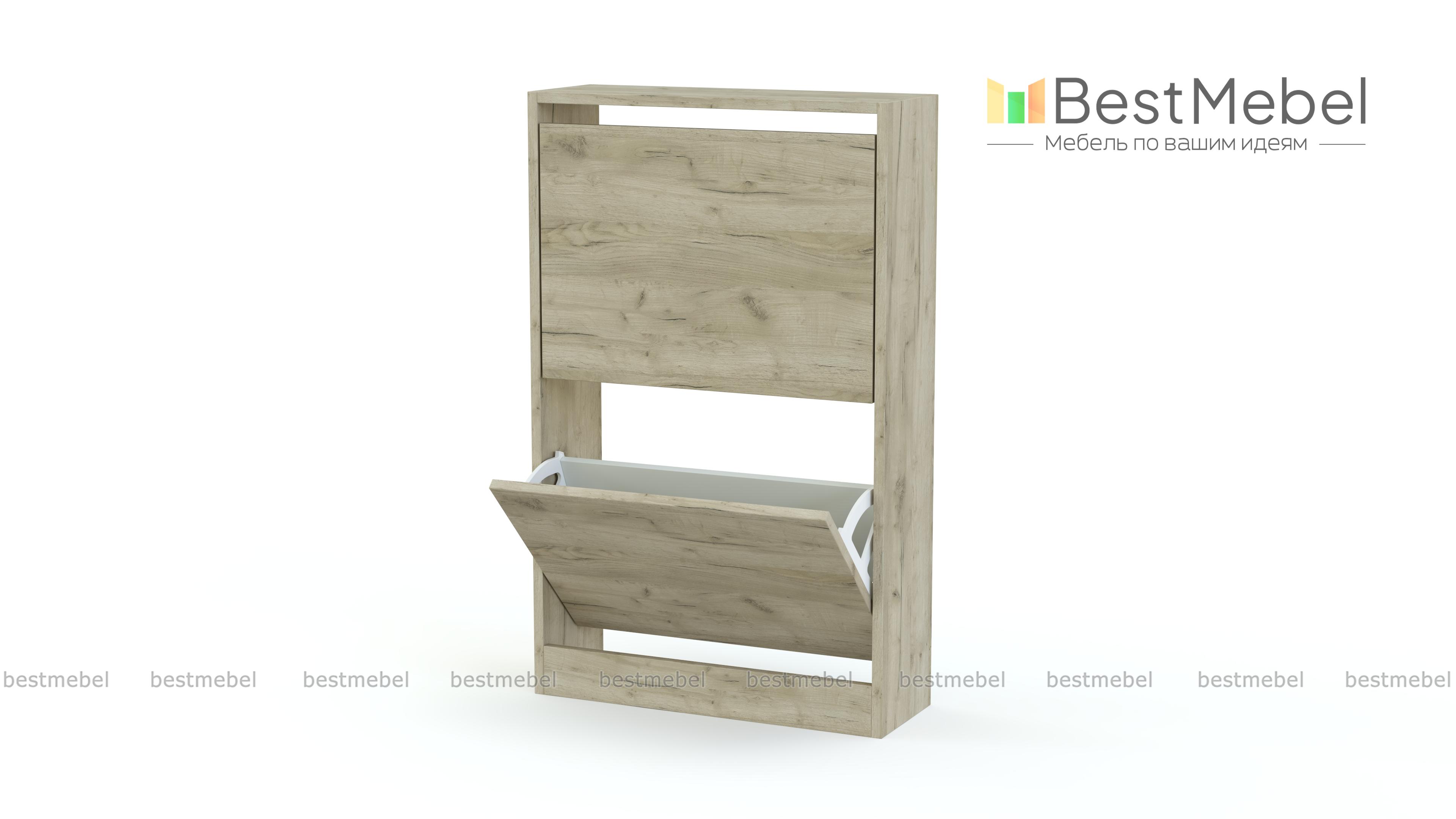 Обувница Анри 5 BMS небольшой глубины оптимальна для размещения в узких коридорах. Компактная напольная модель отличается лаконичным дизайном, который легко вписывается в большинство современных интерьеров. Изготовленная из ламинированной плиты нейтрального цвета, обувница укомплектована парой откидных секций для размещения повседневной обуви. Купить обувницу Анри 5 BMS вы сможете в нашем интернет-магазине, подобрав нужные размеры и оттенок из каталога.