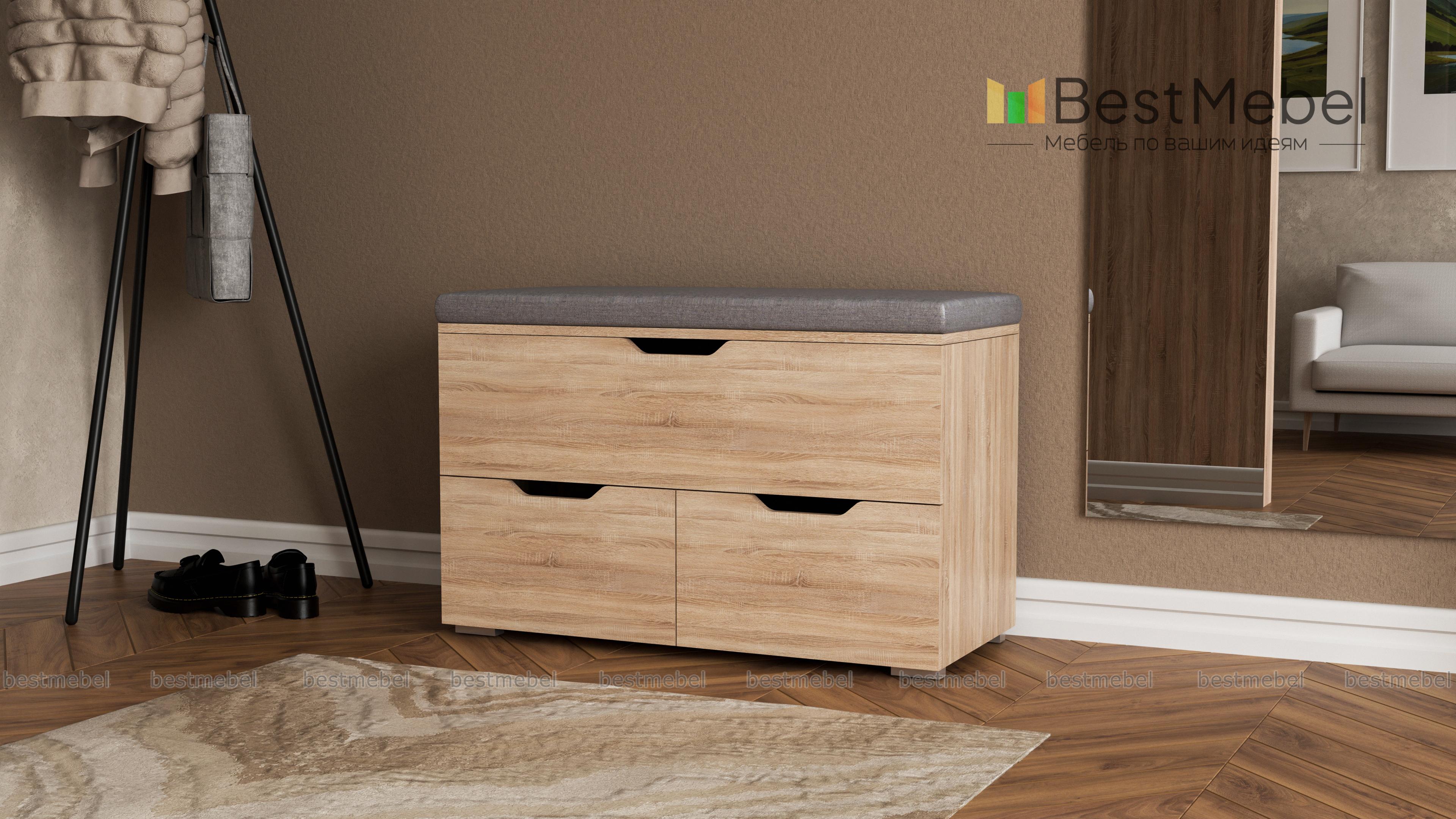 Тумба-банкетка Маэстро BMS - практичное решение для небольших современных прихожих в стиле лофт или скандинавском. Актуальная модель нарочито лаконична и выполнена в оттенках под массив дерева с мягкой обивкой в износостойкой рогожке. Низкая тумба оборудована двумя выдвижными ящиками с ручками-вырезами и скрытым под сиденьем просторным внутренним отделением, которые позволят разместить обувь, аксессуары, уходовые средства. Купить тумбу-банкетку Маэстро BMS и эффективно использовать пространство вам поможет наш интернет-магазин.