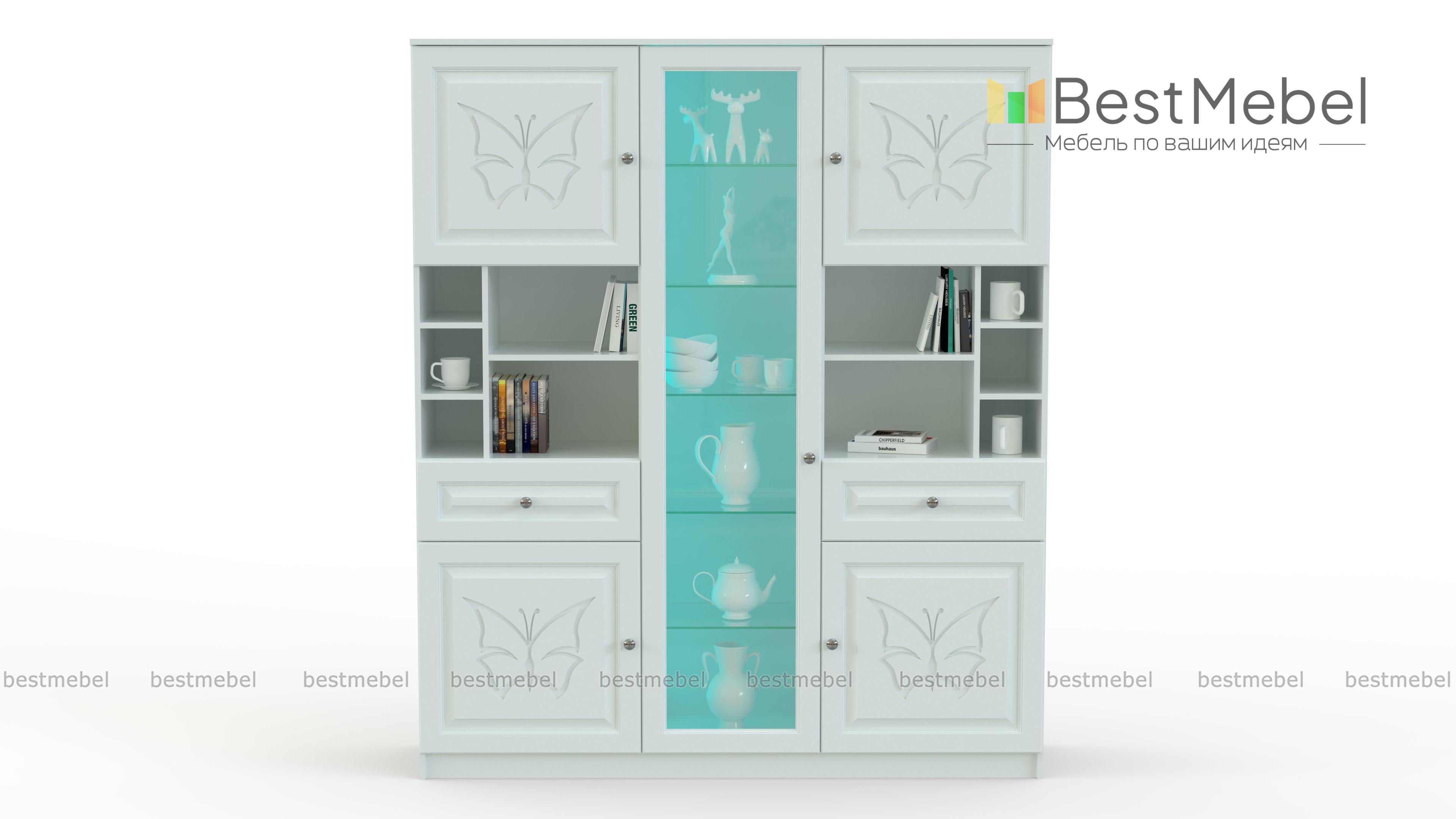 Тумба с витриной Фимо 3 BMS сочетает в себе эффектный классический дизайн и практичность конструкции. Выполненный в белом цвете и декорированный изящной фрезеровкой, шкаф выглядит изящно и украсит интерьер гостиной или просторной столовой. Для удобного размещения множества бытовых мелочей и красивой посуды модель оборудована закрытыми отделениями, открытыми секциями с полочками, двумя выдвижными ящиками и расположенной по центру распашной витриной. Купить тумбу с витриной Фимо 3 BMS приглашаем в наш интернет-магазин.