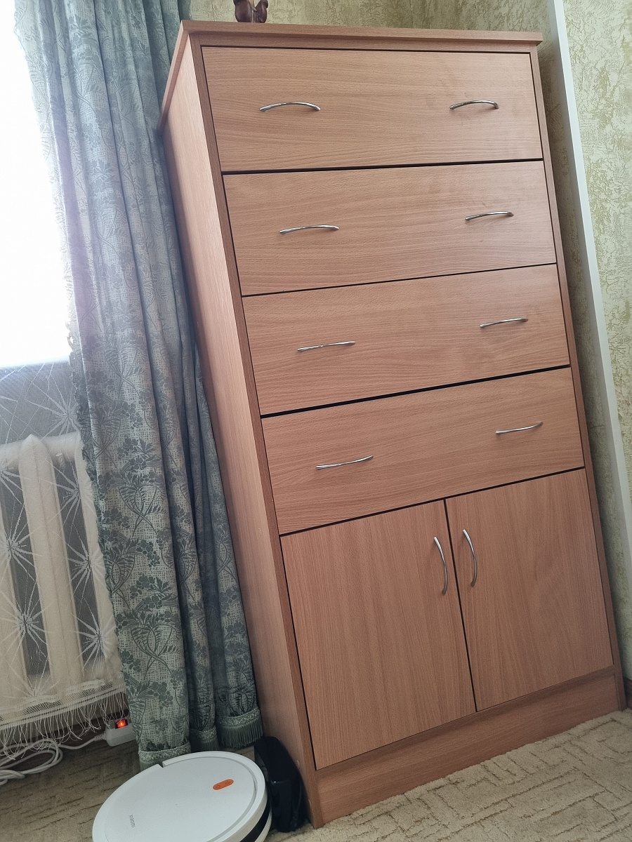 Про товар: Внешне выглядит очень хорошо, прям цена/качество отличные. Есть до чего докопаться, но что бы этого не было ценник должен быть раза в 3 дороже.Про сборку: если сам не собирал ни когда комоды - то лучше и не пробовать. Инструкции икеевской нет, есть схема где какая деталь должна быть, все детали подписаны, но я бы не справился. Сборщик от этой компании был отличный, вежливый, очень внимательно и аккуратно собирал.Про компанию:Не слышал о них, но оказались очень хороши, всё чётко, видимо поток и справляются хорошо.Был инцидент при сборке, заменили крышку за неделю(сразу опись, через неделю новая крышка, через день установщик заменил). Осадка после этого нет, т.к. всё чётко заменили.Итог:Цена отличная, качество хорошее, сервис отличный. В след раз буду в первую очередь у них смотреть мебель.