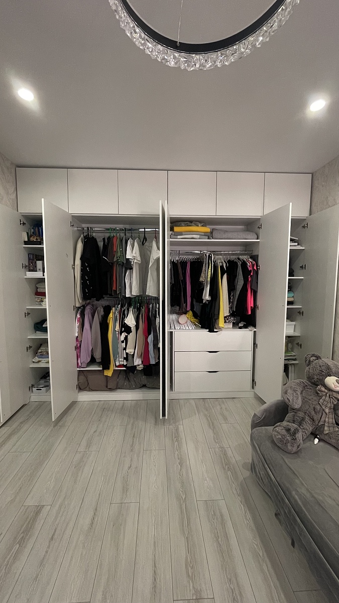 Заказ 00000924370, изделие ЭСКИЗ Шкаф распашной Остин Лайт 11 BMS (3340х2700х495)Заказала шкаф по своим размерам, и своему наполнению, на сайте все удобно, можно самостоятельно указать свои параметры. Эскиз подтвердили быстро. Через неделю шкаф был уже изготовлен, не смотря на новогодние праздники. Шкаф решили собрать сами с мужем. Все собрали без проблем