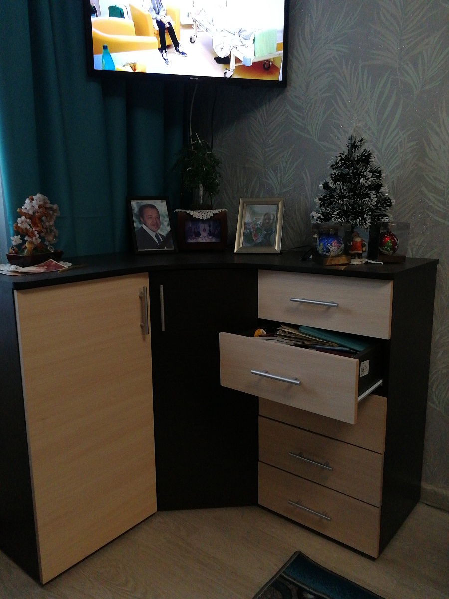 Заказывал тумбу Мишель в этом магазине по своим размерам 1400х850х450 в цвете Венге Цава (заказ №00000888634). Понравилась возможность визуализировать изделие до покупки и вносить изменения в конструктив — попросил добавить третий выдвижной ящик. Изготовили и доставили в кратчайшие сроки. Упаковано хорошо, панели и прочие детали без следов повреждения. Собирал сам. Справился, в комплекте шла схема сборки, но хотелось бы, чтобы клали ещё какую-нибудь инструкцию более подробную. Крепежа хватило.В целом всем доволен. Смотрится отлично, вместительна, сочетает в себе функции и комода. И телевизор при необходимости можно поставить, но он у меня уже на кронштейне был)Спасибо большое магазину за качественную и функциональную мебель, теперь знаю, к кому обращаться