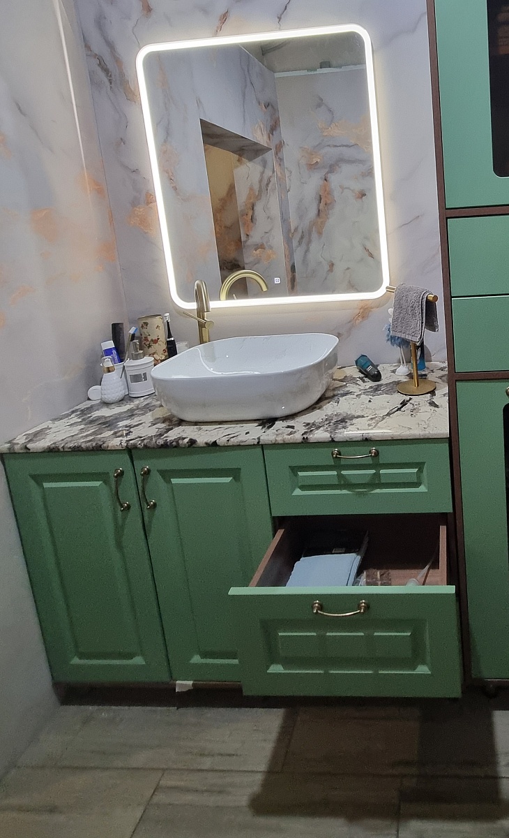 Заказ 00000275112, изделие ЭСКИЗ №00000275112 Тумба в ванную Принстон 1. Приобретали в ноябре 2025года по индивидуальным размерам. Тумба очень понравилась. Красивая, функциональная, качественная. Все размеры и ньюансы учтены верно. Если не заказываете сборку учитывайте что товар приходит в полностью разобранном виде и нужно собирать самим все от и до и корпус и ящики.