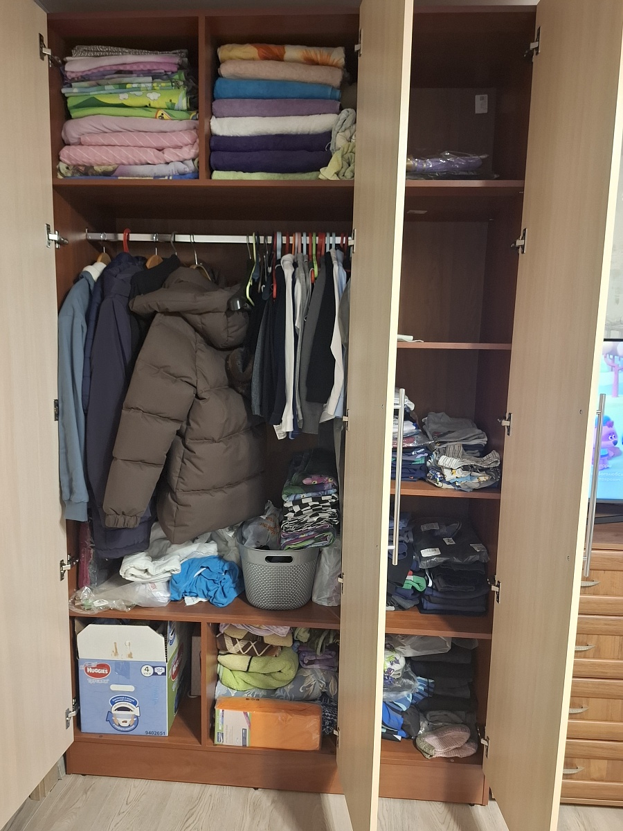 Отличный шкаф. При заказе убрали штанги, добавили полки. И получился как мы искали.