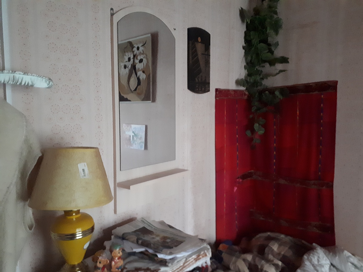 Зеркало прекрасно вписалось в интерьер комнаты, а по цвету прямо слилось с обоями.