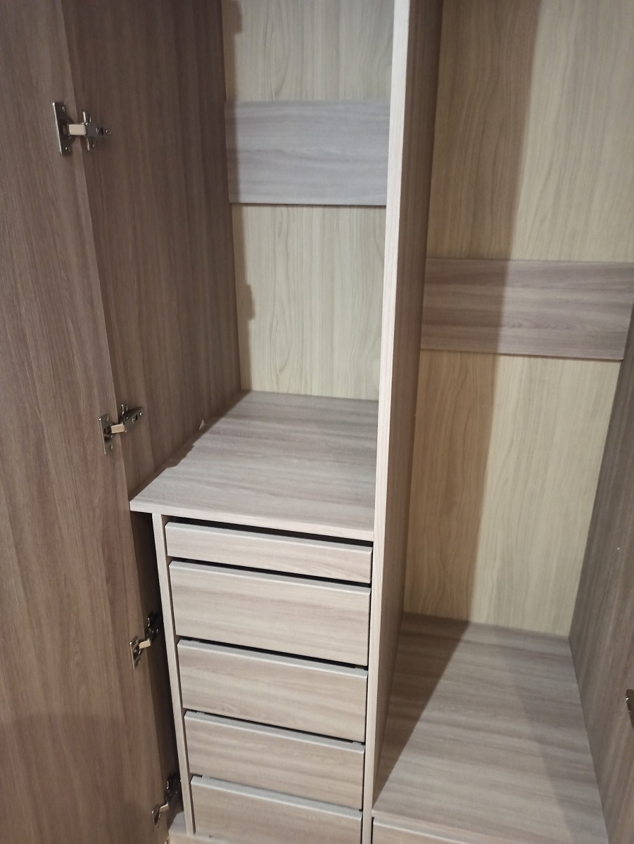 Всём добра! Приобрели данный шкаф. Вышла задержка с доставкой. Начал сомневаться в данной компании, но водитель развеял сомнения - сутки стоял с стуканувшим двиглом. И вот-шкаф. Никакого химозного запаха дешёвой плиты и клея. Отделка фасадов и стенок - на твёрдую пятёрку. Вот отсутствие инструкции по сборке-минусок, но согласен, шкаф сделан по индивидуальным параметрам. Мой респект конструкторам за возможность вертикальной сборки данной конструкции в ограниченной высоте. И сборка-добротная, как раньше, а не "три гвоздя и палка".Все детали подогнаны, крепёж рассчитан. Жена довольна. Рекомендую.