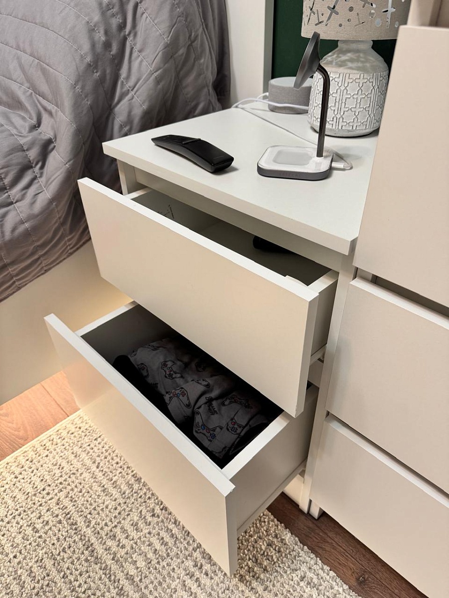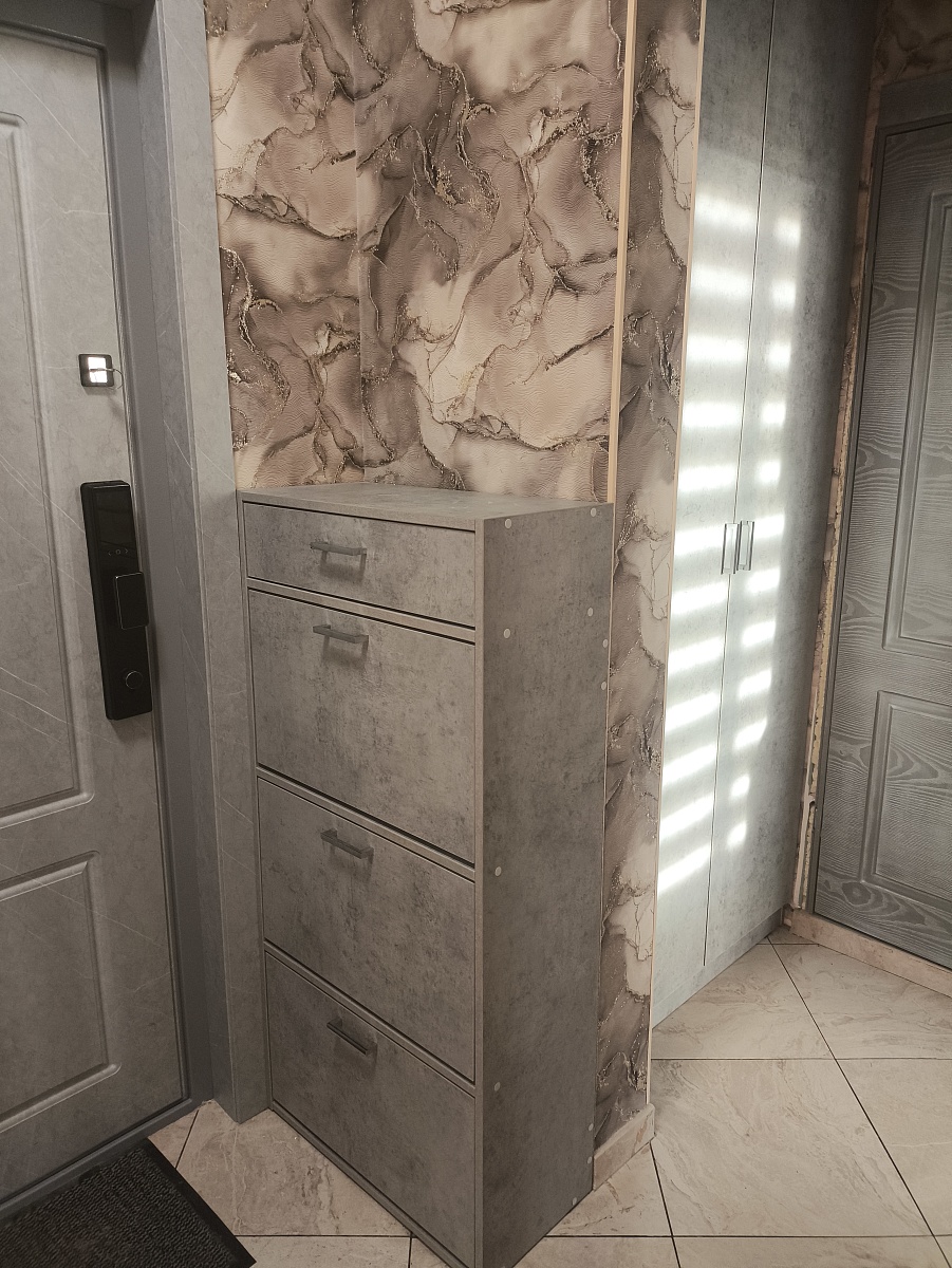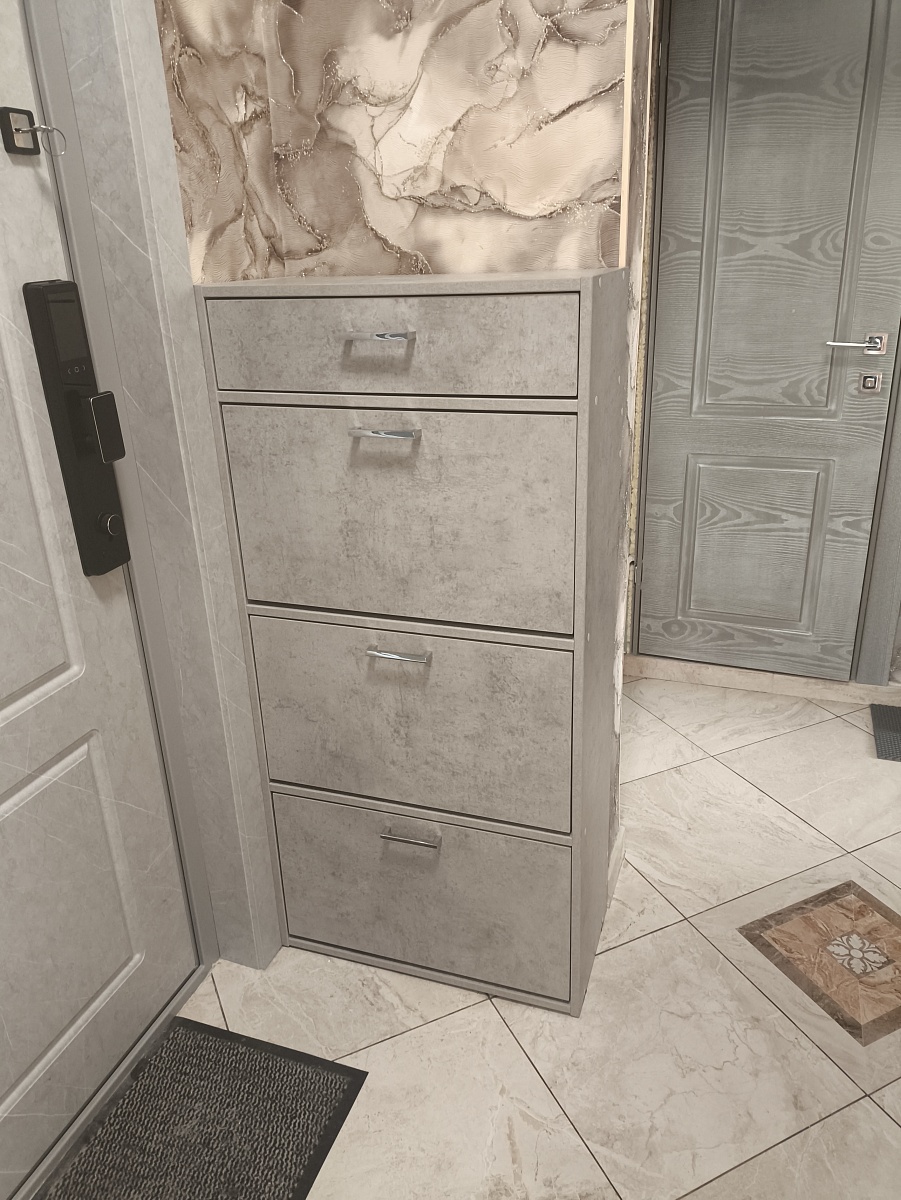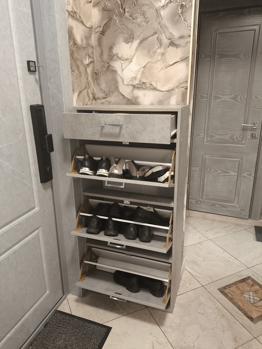 Именно этот дизайн стеллажа подошёл по моим надобностям. И что я получил в итоге?Перво-наперво, сборка была не такая простая и понятная. Инструкция в комплекте непонятная от слова совсем, благо был QR-код на 3D модель. Т.е. после сборок мебели от Ikea очень сильно отличается инструкция.Зазоры. В некоторых местах заметны небольшие просветы, даже после того как многие получилось подтянуть.И последнее плохое, то-ли при доставке, или изначально: на стойке есть след дефекта как-будто провели чем-то острым, но след неглубокий (которую расположил плохой стороной к шкафу). Это мелочи, но не приятно.К хорошему Удобства конструктора на сайте. Ты можешь буквально всё изменить, а потом ещё и запросить объёмный вариант, чтобы представлять что получится в итоге. Добавить другие направляющие, подсветку и т.п.Поддержка на уровне, на всех этапах помогала решить все нюансы.В общем и целом, рекомендую, если готовые варианты у других производителей не устраивают!