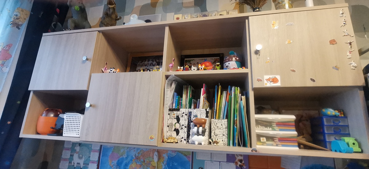 Заказ №929250,полка Роксана. Заказ привезли вовремя, предварительно позвонив. Заказывали в детскую комнату, дети довольны, все поместилось. Цвет и размер совпадают, петли с доводчиками работают, запчасти все на месте, собирал муж, без проблем.