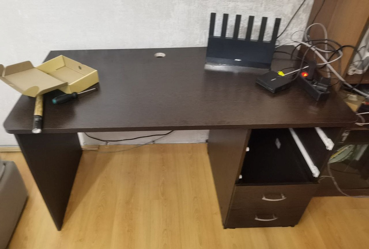 Отличный стол, качество просто супер! Скорость изготовления хоть и не 2-3 дня, как указано на сайте, но очень быстро! За полторы недели сделали под мои размеры, привезли. Собрал сам -- несложно. Единственный совсем маленький минус, винты под ручки ящиков положили длиной 40мм, там надо не более 35мм, ручки болтаются. Но с этим я разберусь претензий нет! В целом столом доволен очень Толстая столешница, крепкий. С моим старым не сравнить жаэе! Буду заказывать еще мебель в этой фирме!