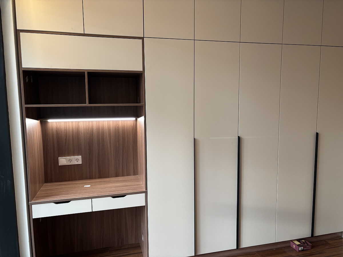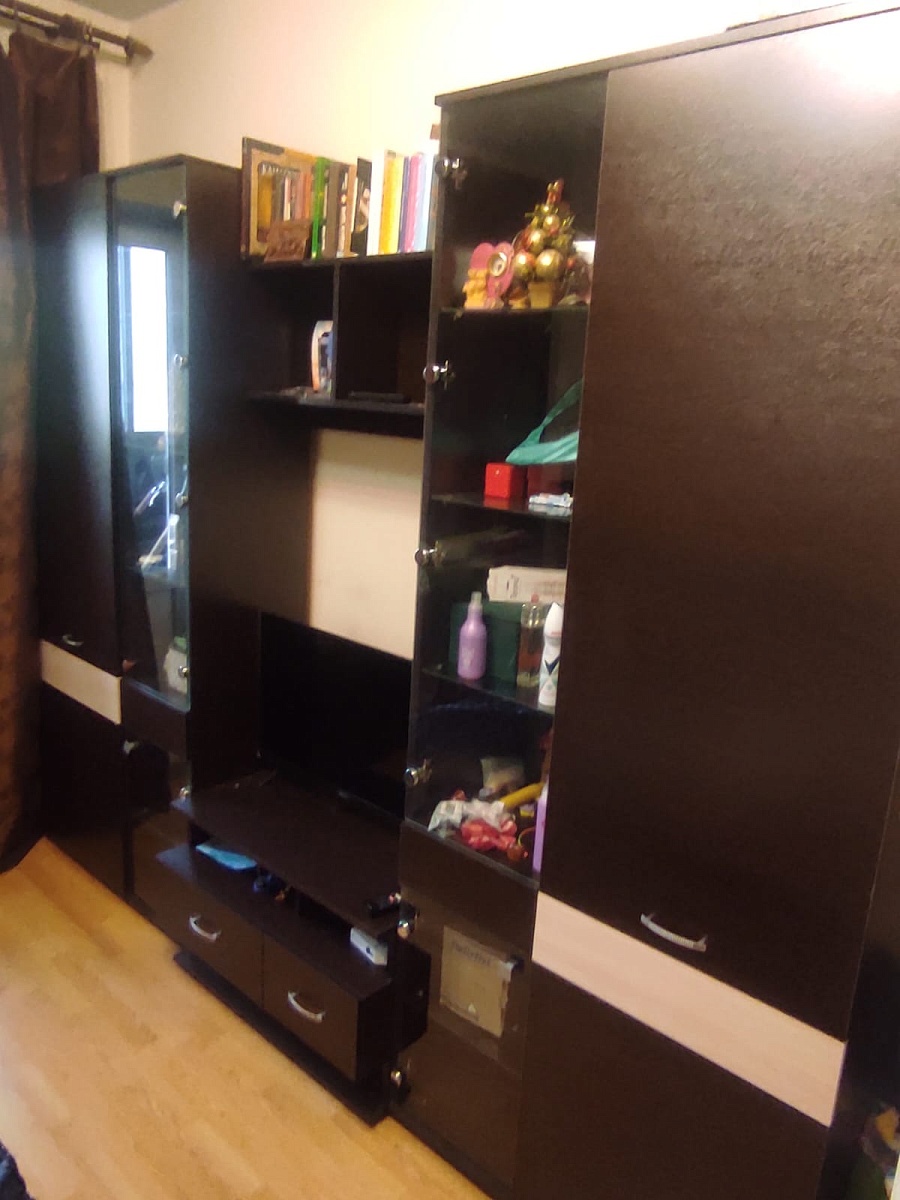 Собирали долго, крепежа было с лихвой, ещё осталось. Да, инструкция оставляет желать лучшего, если бы не опыт мужа, не знаю на сколько это бы растянулось. Просила сделать полки с другой стороны -сделали. Получилось шикарно! Я , девушка, особо не напрягаясь могу сама собрать и разобрать. И да, с диваном не очень удобно, подушки убирай, собирай, поэтому диван мы сделали как отдельно стоящий у соседней стены.