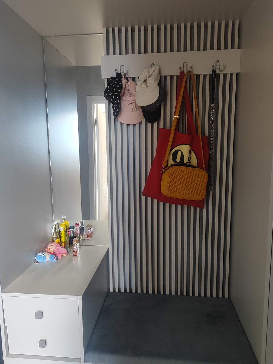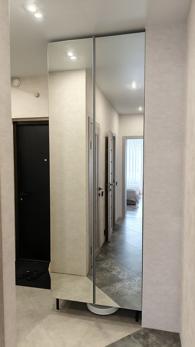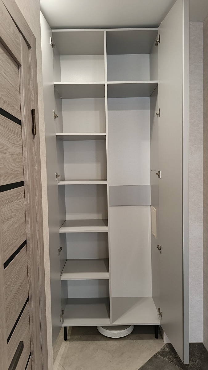 Заказ 00000989902. Шкаф "Остин Нео 16 BMS" мы брали в спальню, чтобы навести порядок с одеждой. Первое, что понравилось – возможность выбрать цвет. Взяли серый – смотрится очень стильно и современно, именно такой нейтральный, но не скучный оттенок, который мы искали. Черные ручки стали отличным контрастным акцентом, завершили вид. Сам дизайн действительно минималистичный и аккуратный, не перегружает пространство.Функционально шкаф оказался удобным. Три двери – хороший размах. Отделение для вешалок вместило все платья и костюмы, полки отлично подошли для футболок, свитеров и постельного белья. Распашная антресоль вверху – спасение для чемоданов и сезонных вещей, которые не нужны каждый день. Зеркало на центральной дверце – просто бомба! Очень удобно видеть себя в полный рост перед выходом, не бегая по квартире. И правда создает ощущение, что комната чуть больше.Но сборка... Сборка была испытанием.Деталей много, и самое сложное – установить вертикальные стенки (боковины и центральную перегородку) в одиночку. Это просто нереально. Они большие, тяжелые, их нужно держать строго вертикально и одновременно прикручивать. Без помощника тут никак, мы еле справились вдвоем. Еще один момент – петли. Их несколько типов (для обычных дверей и для зеркальной), и в инструкции не сразу понятно, какие куда. Пришлось искать видео сборки в интернете, чтобы разобраться – без него наверняка перепутали бы. Будьте готовы к этому этапу.Если вам нужен компактный, но вместительный шкаф с современным дизайном и полным зеркалом, и вы готовы к сборке (обязательно с помощником и, возможно, с обучающим видео под рукой), то "Остин Нео" – отличный вариант. Смотрится дороже своей цены, и теперь вся одежда наконец-то прибрана!
