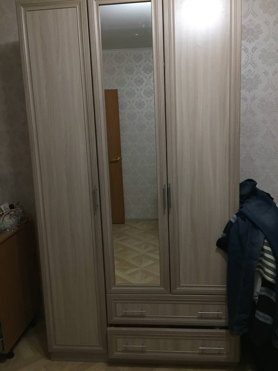 Цвет "Ясень шимо светлый",  размеры 1200х520х2200. Удобный шкаф. При сборке дверей , одна дверь сразу слетела с петель. Пришлось заказывать новую несущую  за свои деньги, потом повторно разбирать и собирать. Сейчас все хорошо с дверьми. Зеркало было на левую дверь в заказе, привезли зеркало центральное. При звонке в магазин через неделю зеркало было доставлено согласно указаниям в заказе. Шкаф нравится, вместительный и стильный. Магазин очень отзывчивый. Спасибо.
