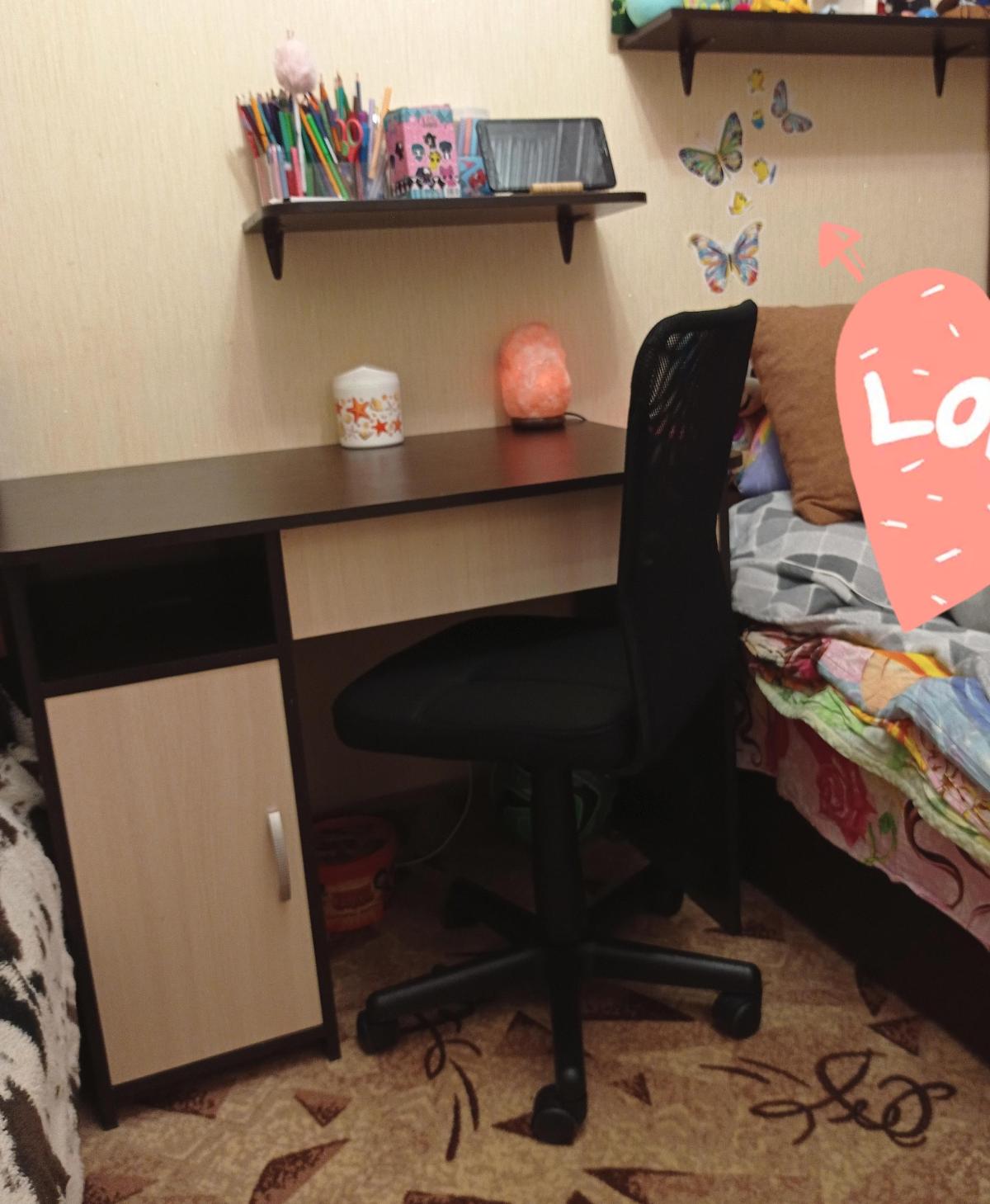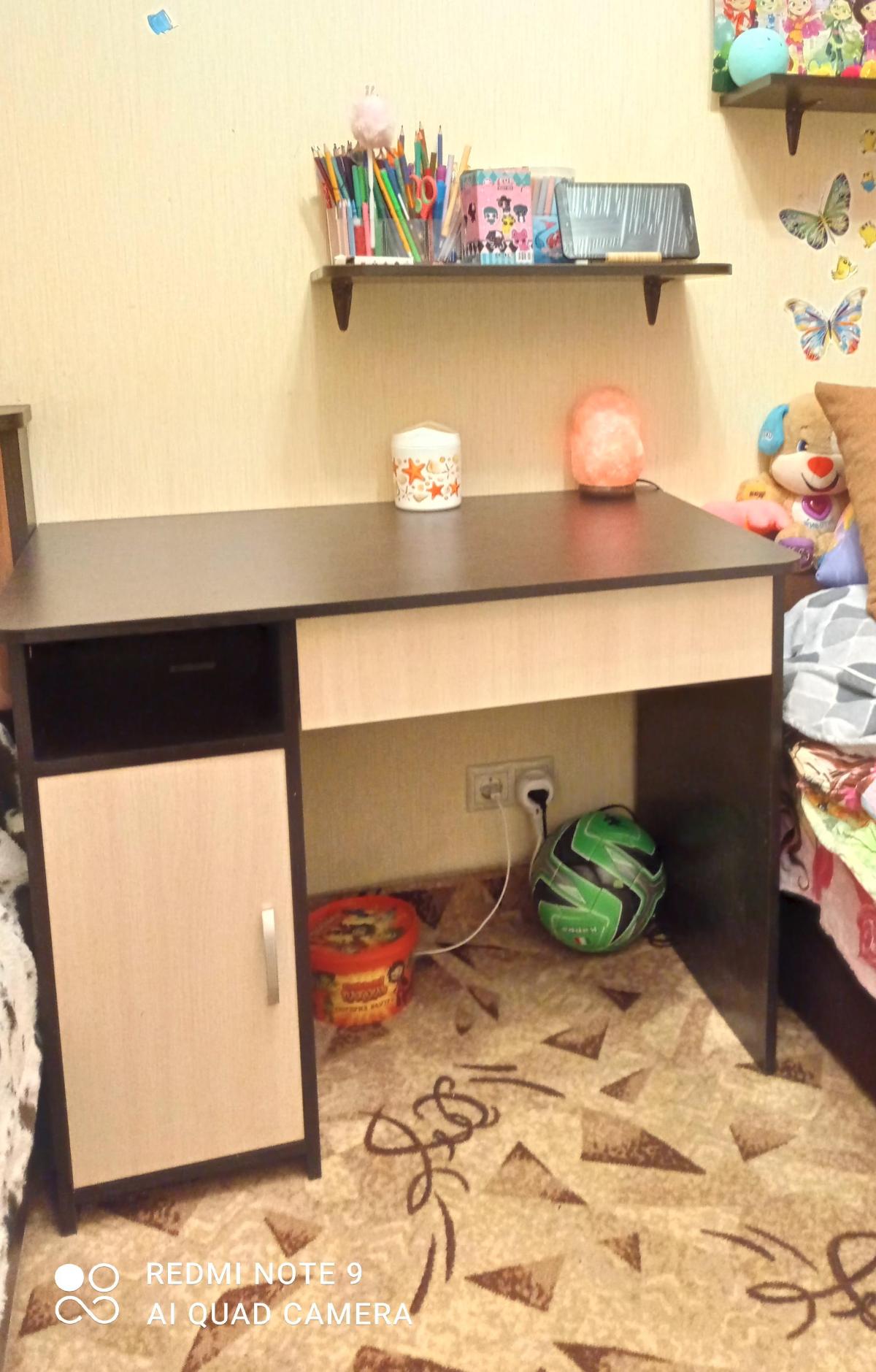 Спасибо огромное, стол вписался в интерьер комнаты, очень удобный, спасибо огромное, заказывали зеркальное отражение. Дочка довольная, очень много место для работы.